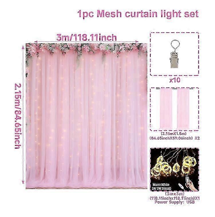 1 Set/2 Pieces Tulle Backdrop Curtains with Lights for Party Wedding Arch Baby Shower Birthday Party Photo Shoot Decorations New Arrival