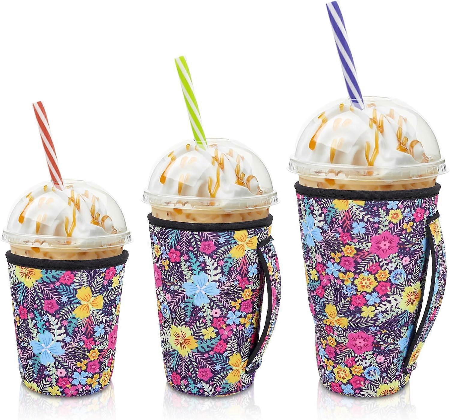 3 Pack Reusable Iced Coffee Cup Insulator Sleeve with Handle for Cold Beverages,Neoprene Cup Holder for Cold Drinks 16-32OZ Cups