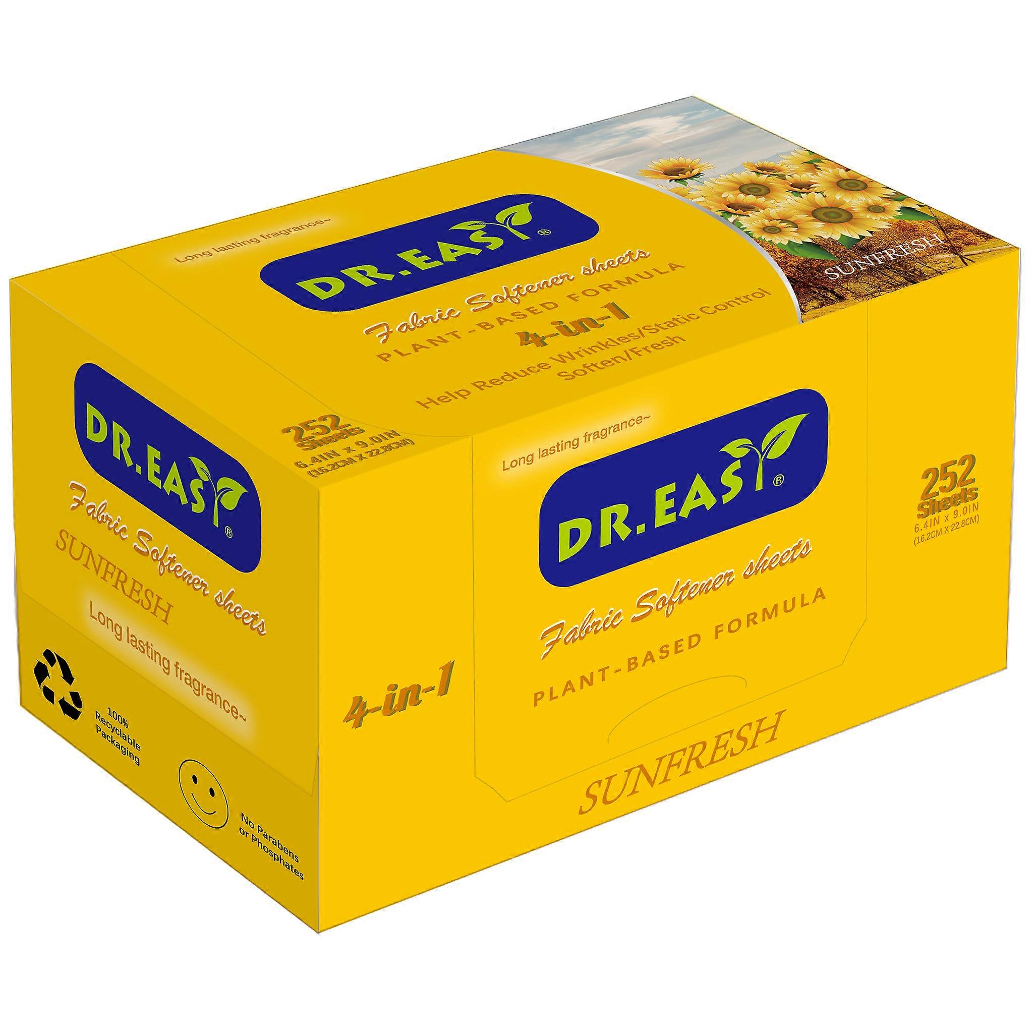 DR. Easy 252 Ct Dryer Sheets Plant Based Formula Fabric Softener Sheet for Laundry Free Clear Essential Oil Scented No Dyes
