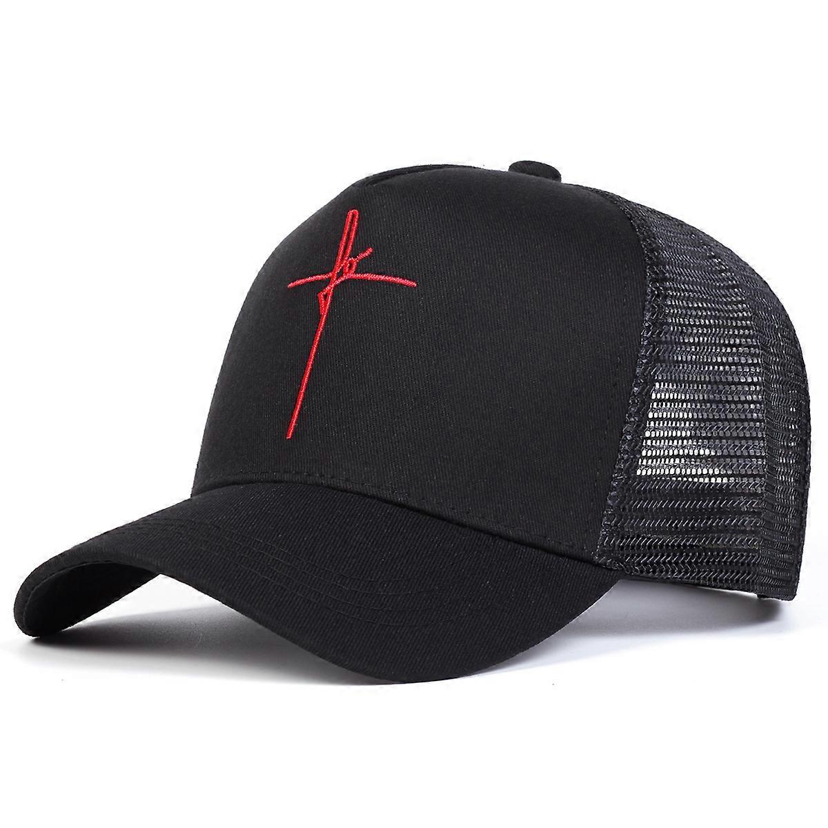 Unisex Cross Embroidery Baseball Net Caps Spring and Summer Outdoor Adjustable Casual Hats Sunscreen Hat