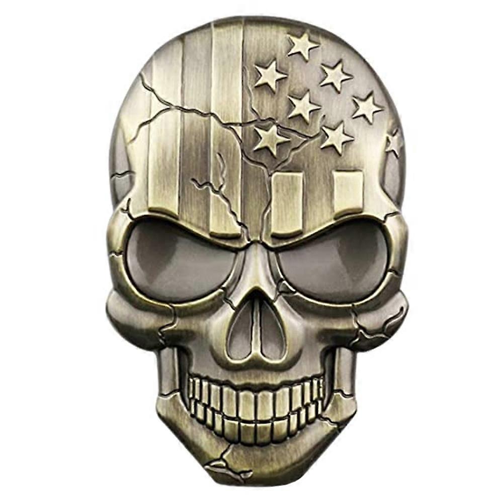 3D Car Emblem Zinc Alloy Skull Shape Sticker for Decor 1Pcs Khaki