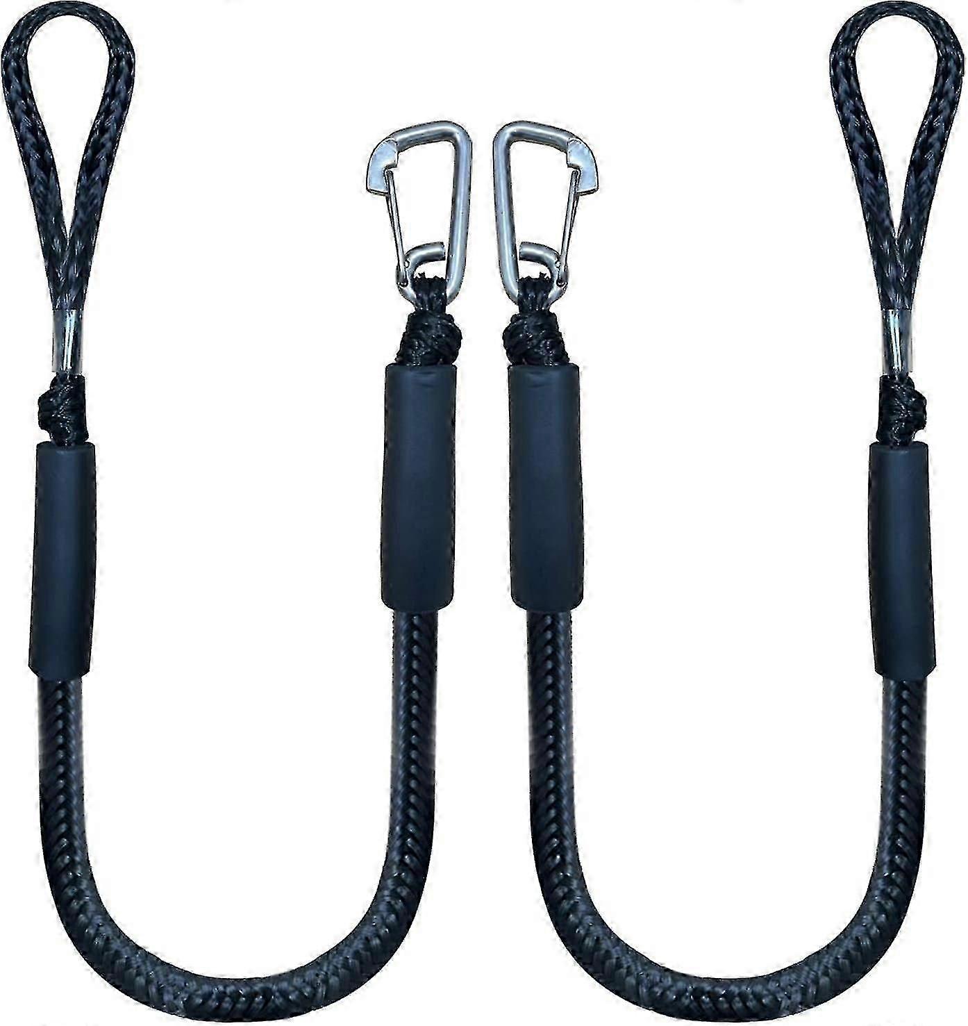 Bungee Dock Line With Hook , Black Mooring Rope For Boat 4 Ft 2 Pack & Black Edition 0120