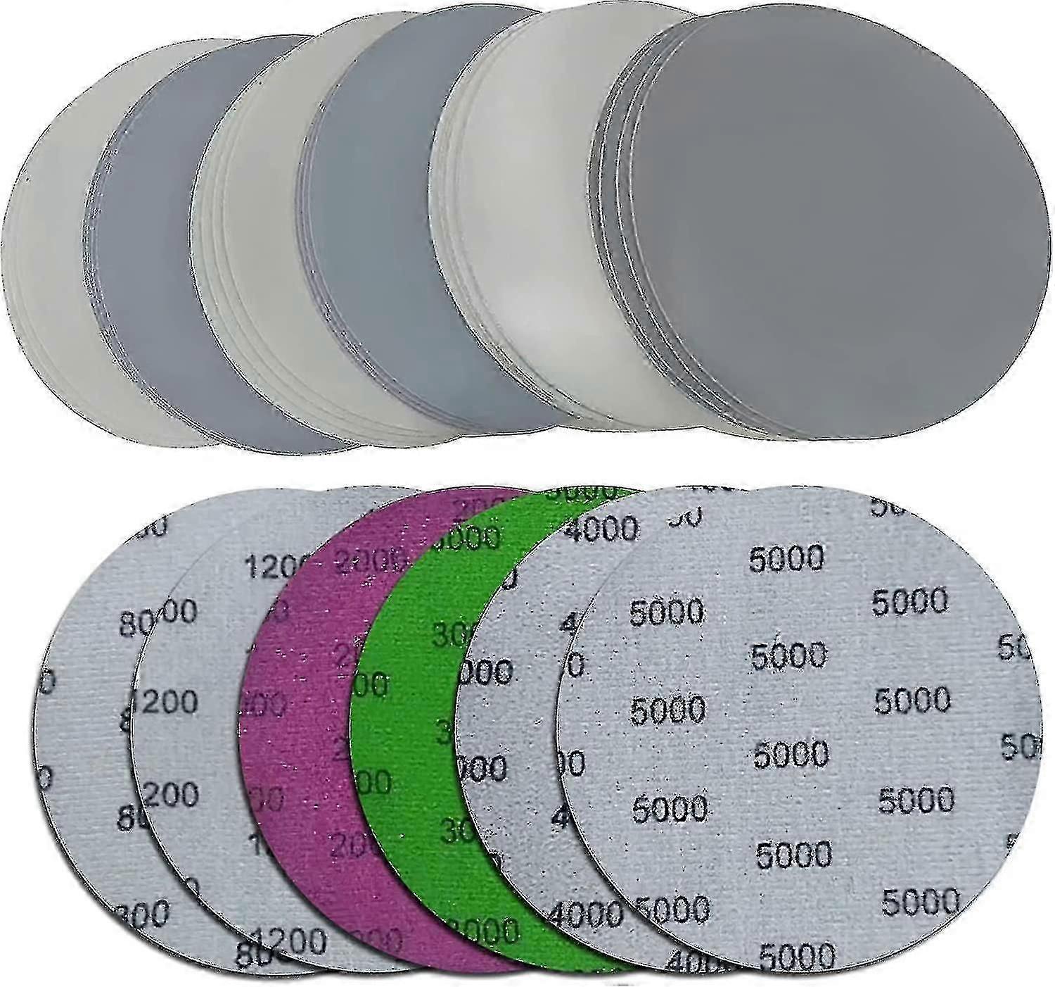 Usage Tips:Plentiful QuantityPackage include 24pcs 5 inch hook and loop sandpaper disk, 4 pieces of each sanding disc, grit: 800 1200 2000 3000 4000 5000. Different grades sandpaper from rough to fine grits to meet your different polishing need. .Premium MaterialThe sanding paper are made of high quality latex paper and silicon carbide that is durable, anti-static, good flexibility, wear resisting and prevent clogging.Uniform grit,very little dust, is good choice for grinding and polishing. .Wet Dry Sanding Disc Sanding pads 125mm can be used wet and dry without perforation. The wetting is more effective because the particles in the sanding surface are washed away to avoid clogging.This round water wet dry sanding discs can also be used for hand polished. .Easy to UseThe Hook & Loop Sanding Pad back of the sandpaper has a velcro design that can be glued onto a random orbit sander, and the velcro sandpaper is easy to install and remove,and you can sand it quickly and effectively.