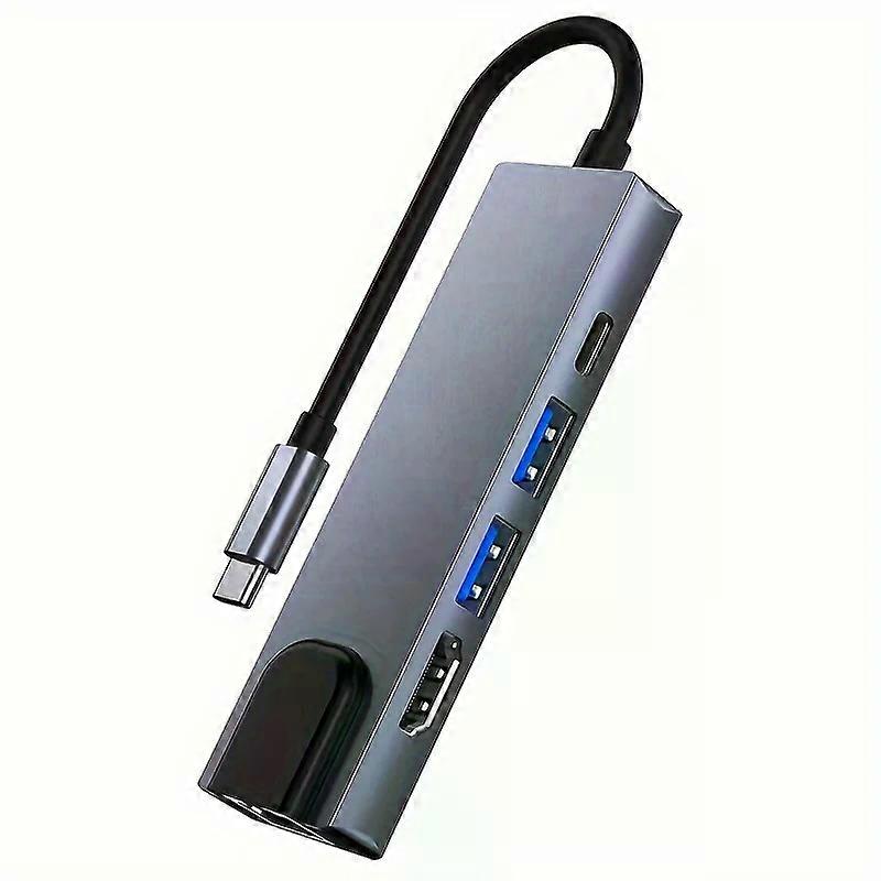 5 in 1 USB C Hub Type C To 4K HDMI-compatible Adapter RJ45 Network 100M Ethernet Lan Charger Port Adapter For Macbook Pro