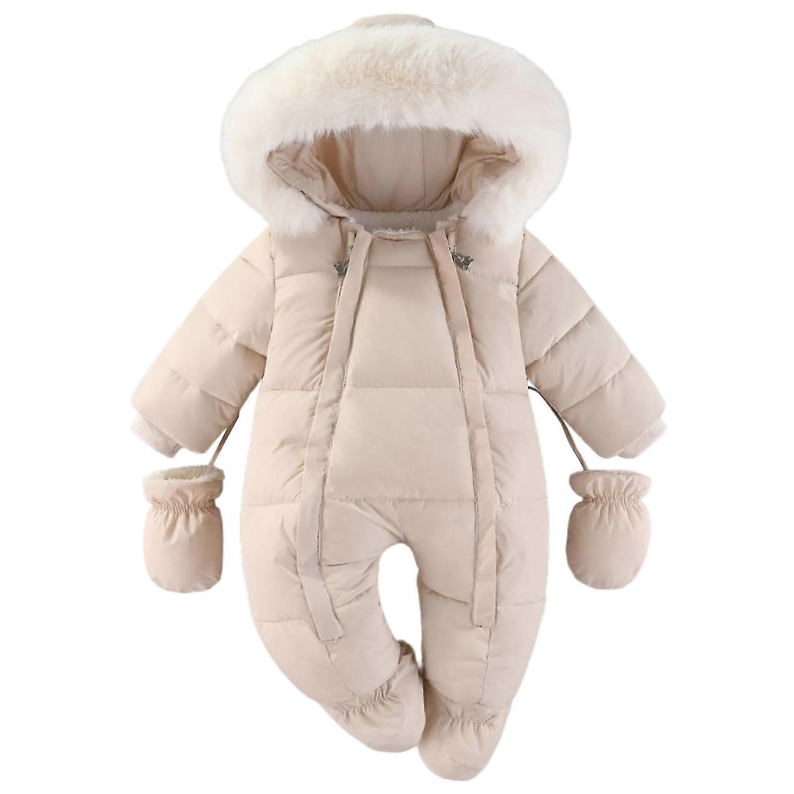 Infants Hooded Jumpsuit Soft Velvet Baby Romper Winter Toddler Bodysuit with Gloves for Cold Weather Protections single zip pink 73cm