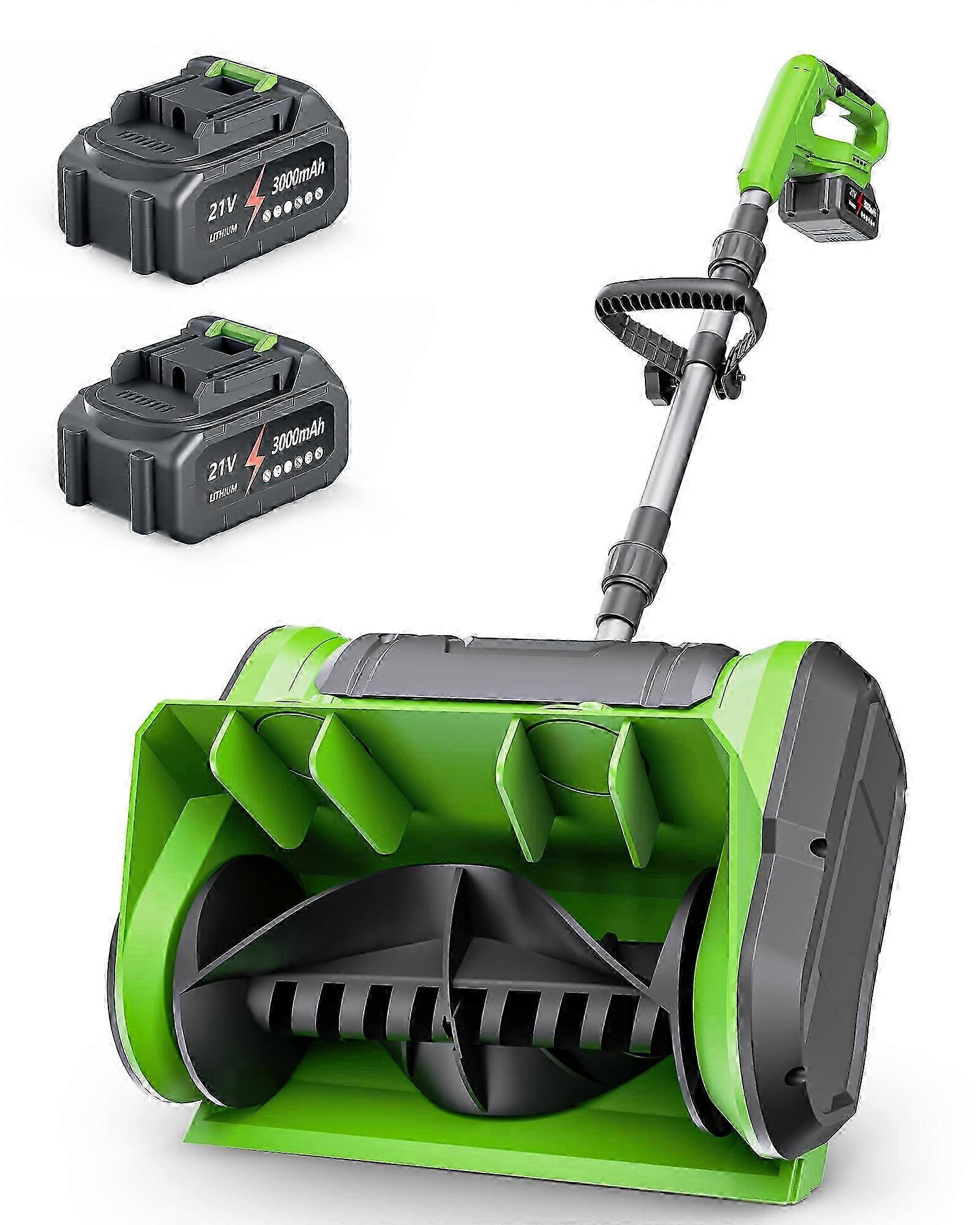 Cordless Snow Shovel with Dual Battery Power – Efficient, Lightweight, and Easy to Use • Dual Battery for Extended Runtime Includes two 21V 3Ah rechargeable batteries, providing up to 34 minutes of continuous operation. Clear your driveway, sidewalk, patio, or steps without interruptions. For performance, warm batteries indoors for 30 minutes before use and allow them to cool before charging. • Lightweight and SeniorFriendly Weighing just 7.85 pounds, this cordless snow shovel is easy for users of all ages to handle. The ergonomic design and adjustable handle help reduce strain on your back, making snow removal safer and more comfortable. Ideal for seniors or anyone seeking a loweffort winter solution. • Powerful 12Inch Clearing Width Equipped with a strong motor and twinblade propeller, it quickly handles up to 6 inches of dry snow. Clears a 12inch wide path in one pass, saving time and reducing physical strain compared to manual shoveling. For wet or heavy snow, loosen with a traditional shovel first and clear in thinner layers. • Adjustable Directional Chute for Control The chute adjusts 90 degrees in total (45 to and45 degrees) to direct snow exactly where you want it. This precision control helps keep cleared areas safe and accessible, and prevents snow buildup in walkways or driveways. • Quiet and Safe Operation Runs quietly, for early morning snow clearing without disturbing neighbors. Features a doubleswitch safety system to prevent accidental startup. Tool assembly allows you to put it together quickly and begin snow removal without delay. Use Scenarios 1. Clear a residential driveway before heading to work in the morning. 2. Remove snow from sidewalks and front steps to maintain safe access for family and visitors. 3. Tidy up patios or backyard paths to create walkable outdoor spaces during winter. Specifications Battery: 2 x 21V 3Ah rechargeable lithiumion Weight: 7.85 lbs Clearing Width: 12 inches Maximum Snow Depth: 6 inches (dry snow) Chute Adjustment: 90 degrees, left/right rotation up to 45 degrees each side Assembly: Tool setup This cordless snow shovel combines portability, efficiency, and userfriendly design to make winter snow removal quicker and less physically demanding, while giving you control over where the snow is directed.