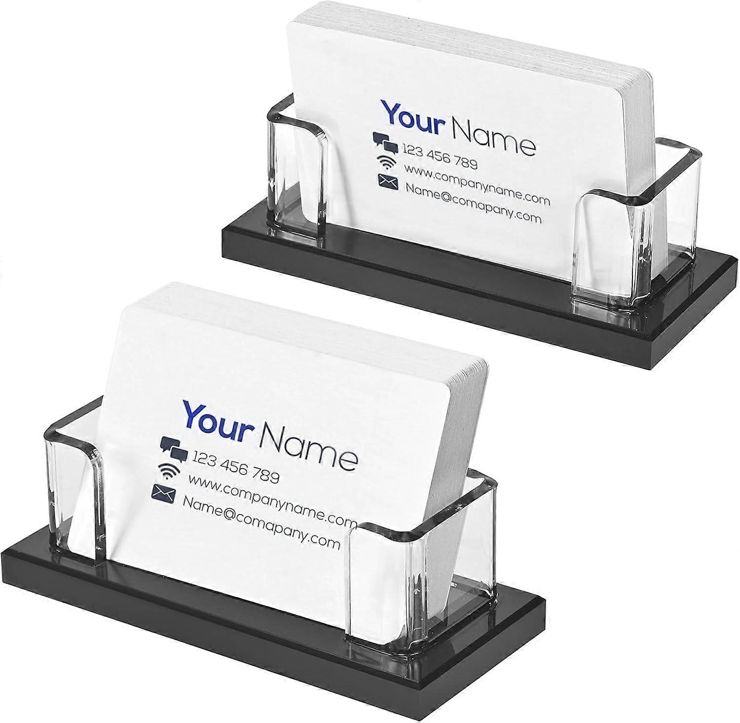 Dimensions: 15cm x 10cm x 4cm Large Capacity: Each business card holder can hold approximately 60–80 business cards, keeping your cards organized and easily accessible. High-Quality Material: Made of clear acrylic, the business card holder is sturdy, durable, and won't yellow over time. Stable Base: With a 1cm thick base, the business card display remains stable, won't tip over, and clearly displays the cards on the front. Professional Design: Elegant and refined, the business card holder fits perfectly on a desk without taking up too much space and showcases your cards. Versatile Use: Ideal for offices, lounges, restaurants, receptions, and shops, the business card holder can also be used to display playing cards or other small cards.