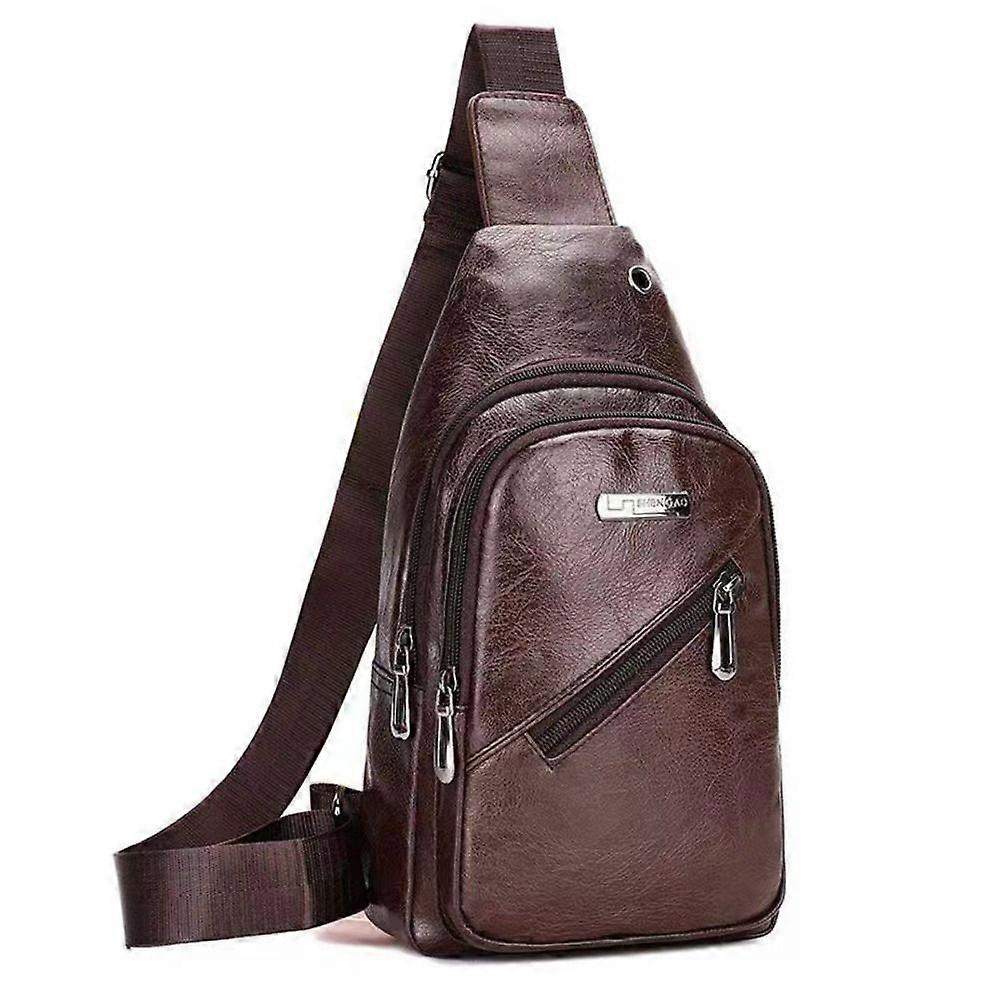 Men's PU Leather Shoulder Bag Multi-layer Anti-theft Travel Crossbody Bag Outdoor Small Backpack Large Capacity Chest Bag