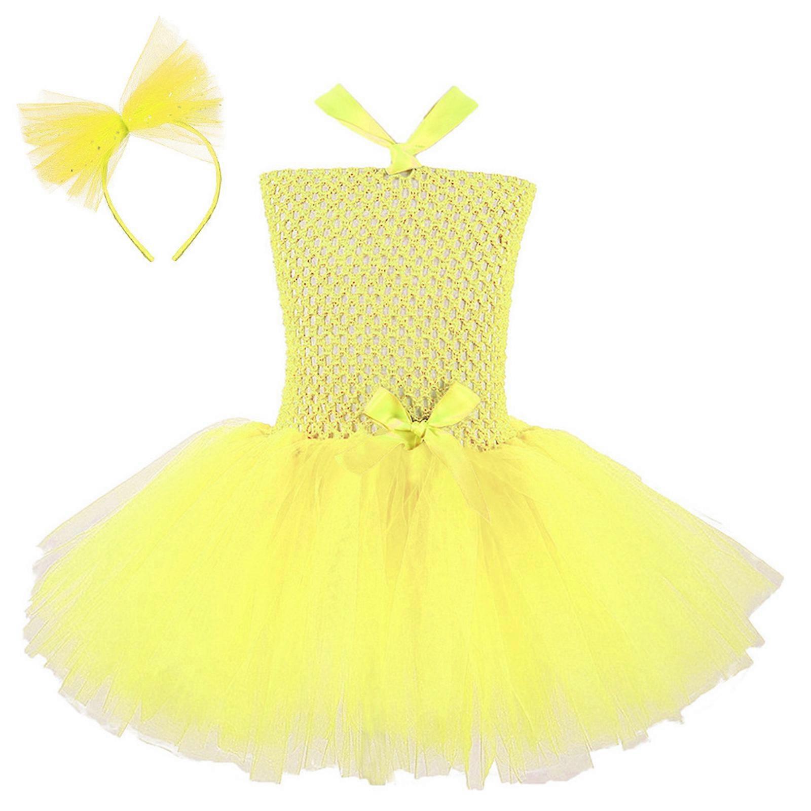 Children's Rainbow Dance Costume Breathable Nylon Fabric Dress for Stage Performances Birthday Parties Comfortable XL Yellow