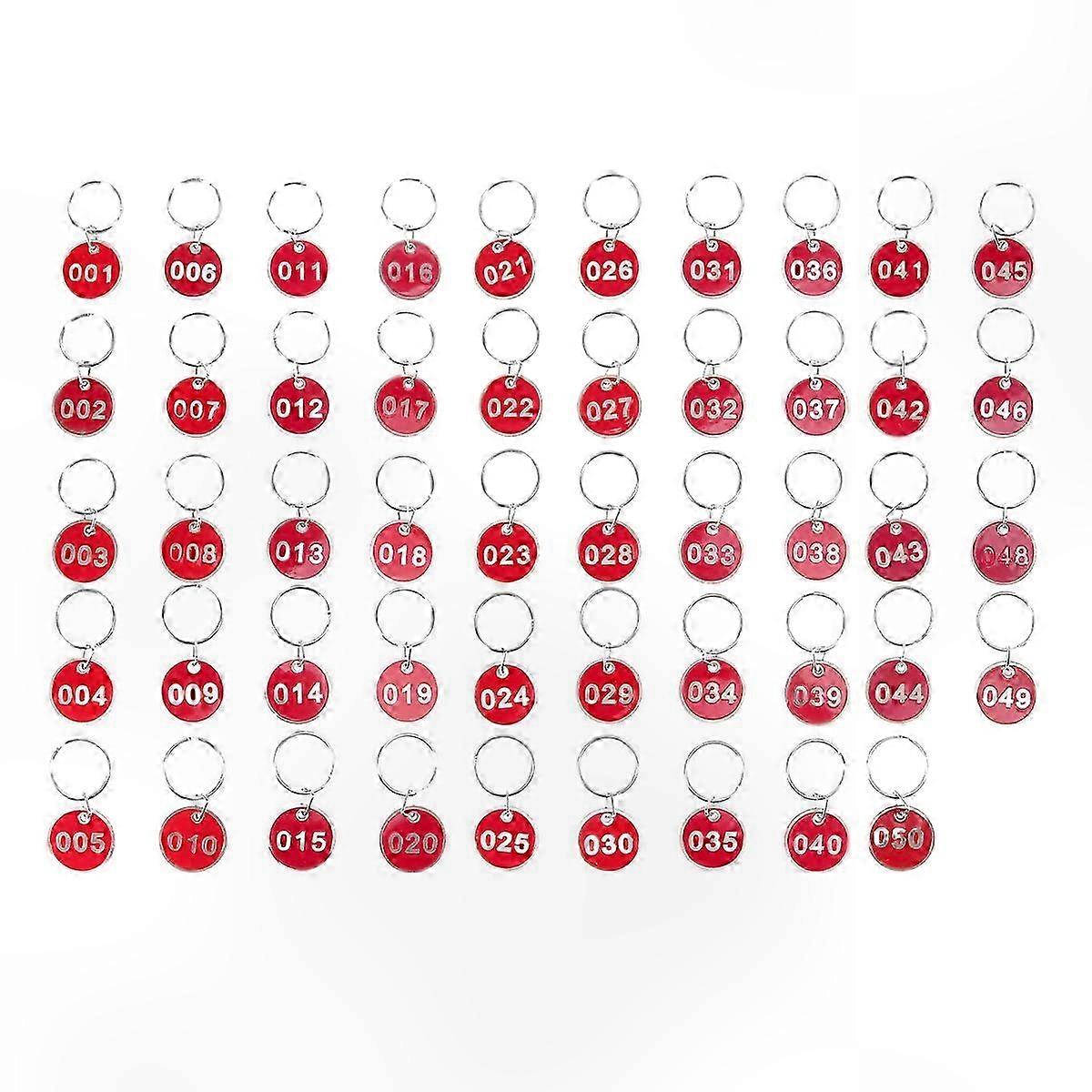 50 Pack Aluminum Storage Tags, Numbered Luggage ID Plates with Key Ring Labels (Red, 1-50)