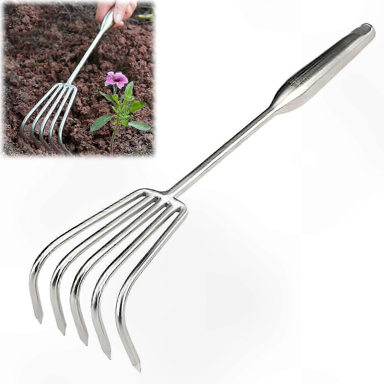 7-Prong Stainless Steel Garden Rake with Wooden Handle for Leaf and Lawn Scarifying