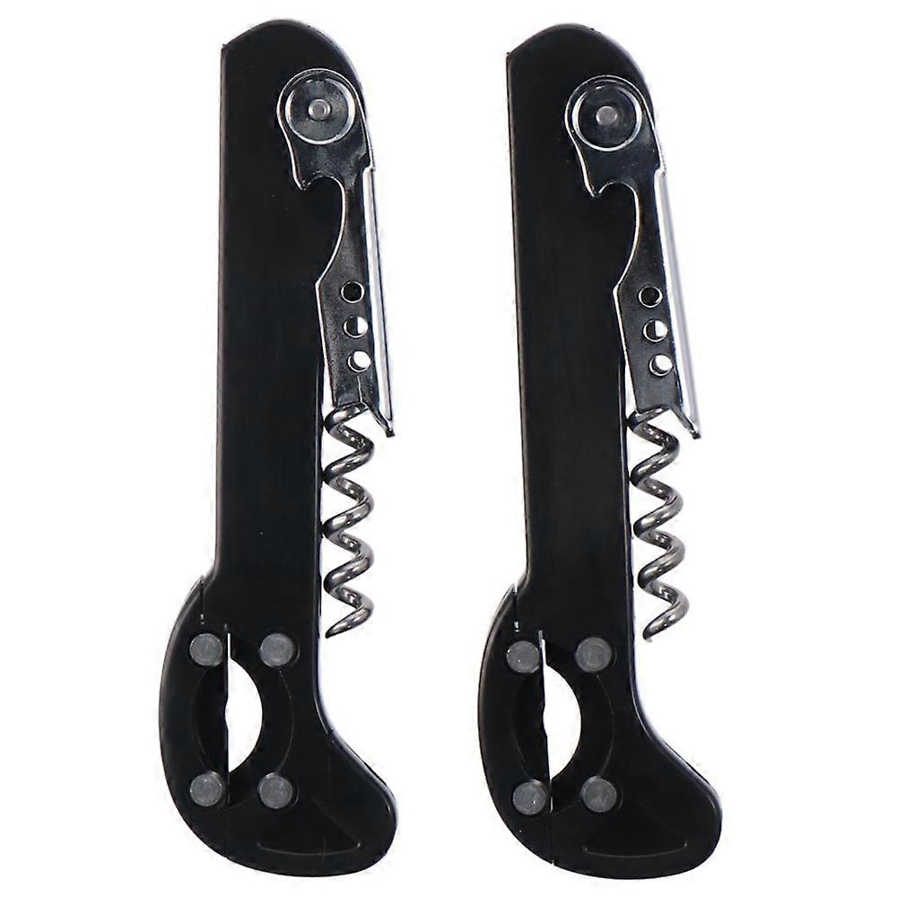 2 pcs Black Multifunctional Red Wine Bottle Opener Three in One 5.7 Inches Stainless Steel Bottle Opener