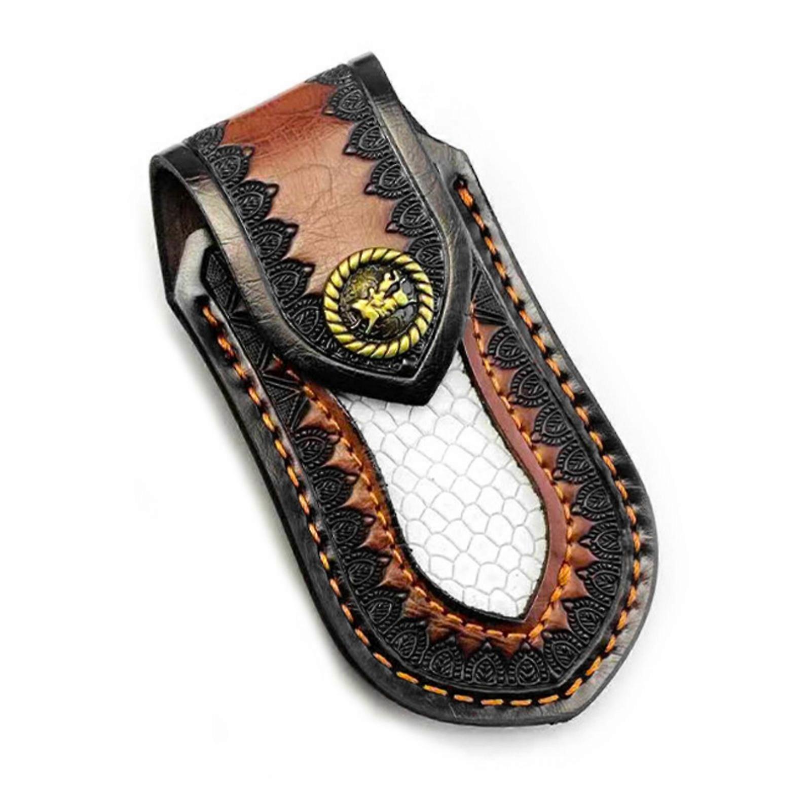 Folding Cutter Sleeve Multitool Pouches Leather Sheath Belt Pocket Cutter Holder for Outdoor Camping, BBQ, Hunting white scales S