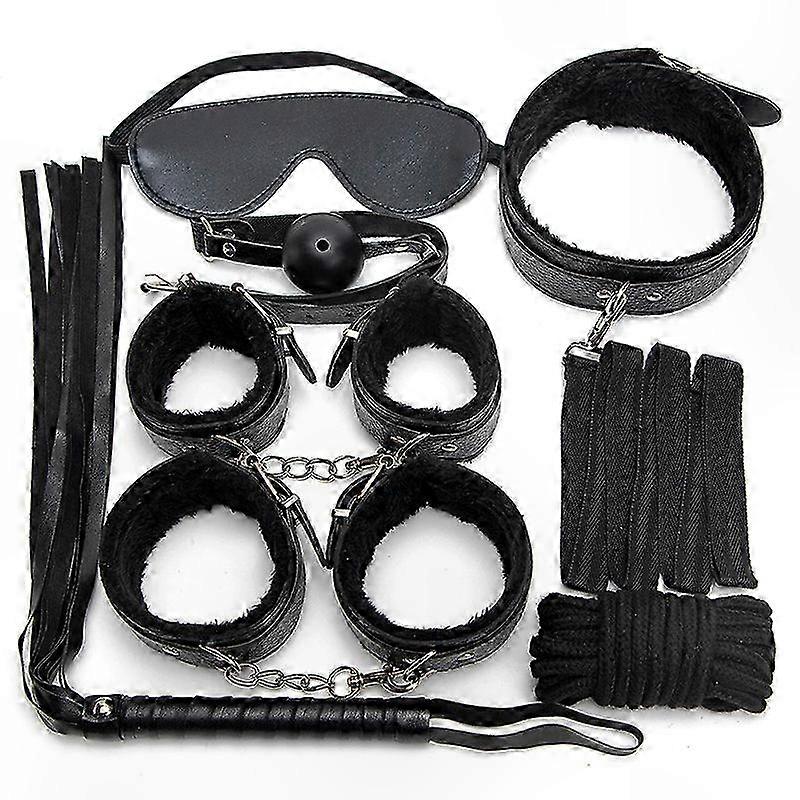 7-Piece Leather Kit for Adults, Includes Handcuffs, Whip, Ball Gag, Rope, and Collar for BDM Play