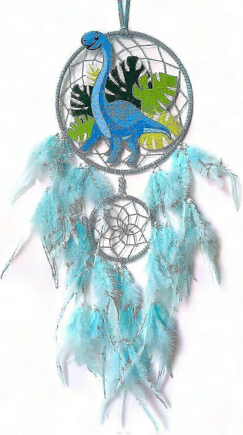 Dinosaur Dream Catcher Night Light for Kids, Dino Wall Decor with Feathers, Boys Girls Bedroom Gift