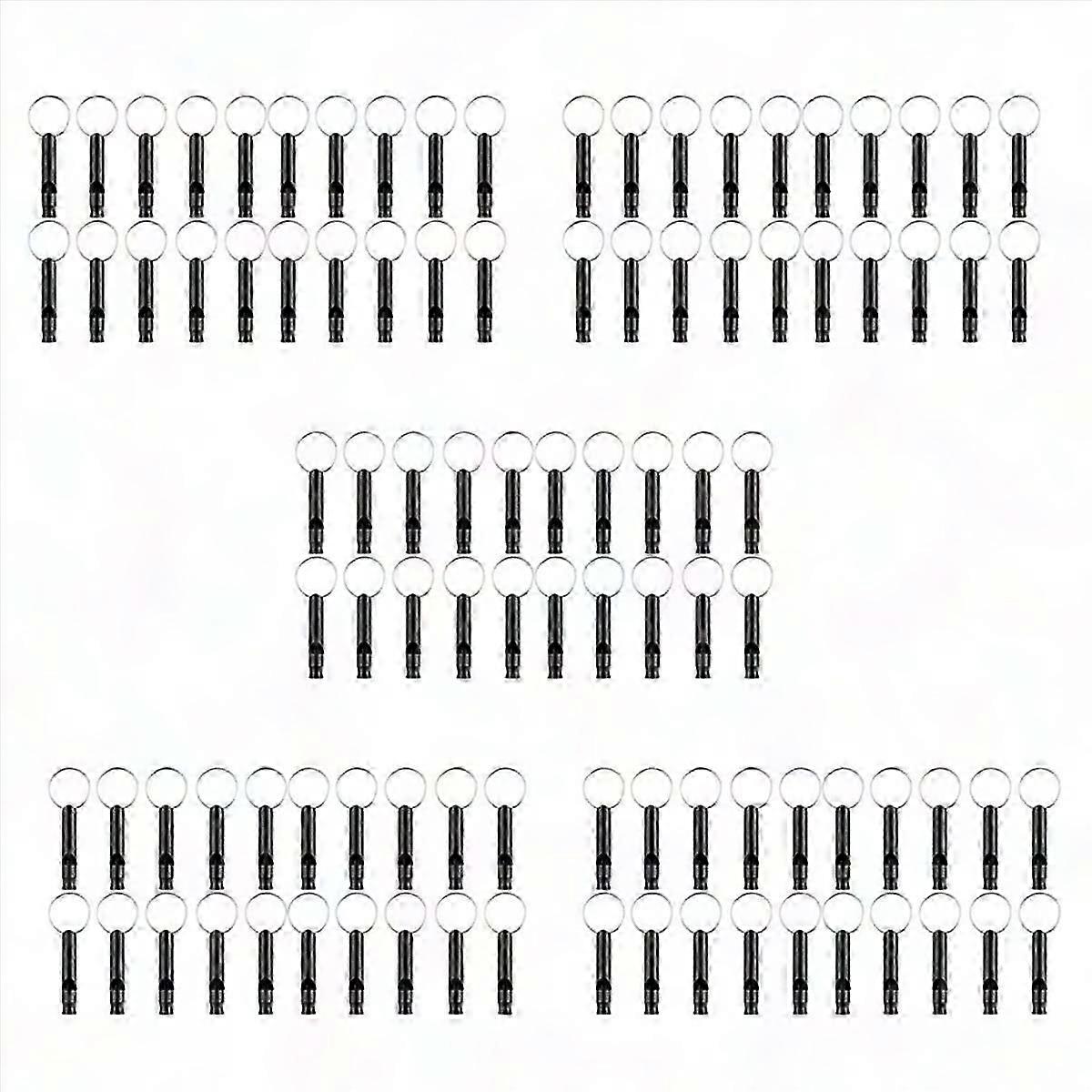 100 Pack Black Aluminum Whistles with Keychain, Sports & Emergency Survival Whistles