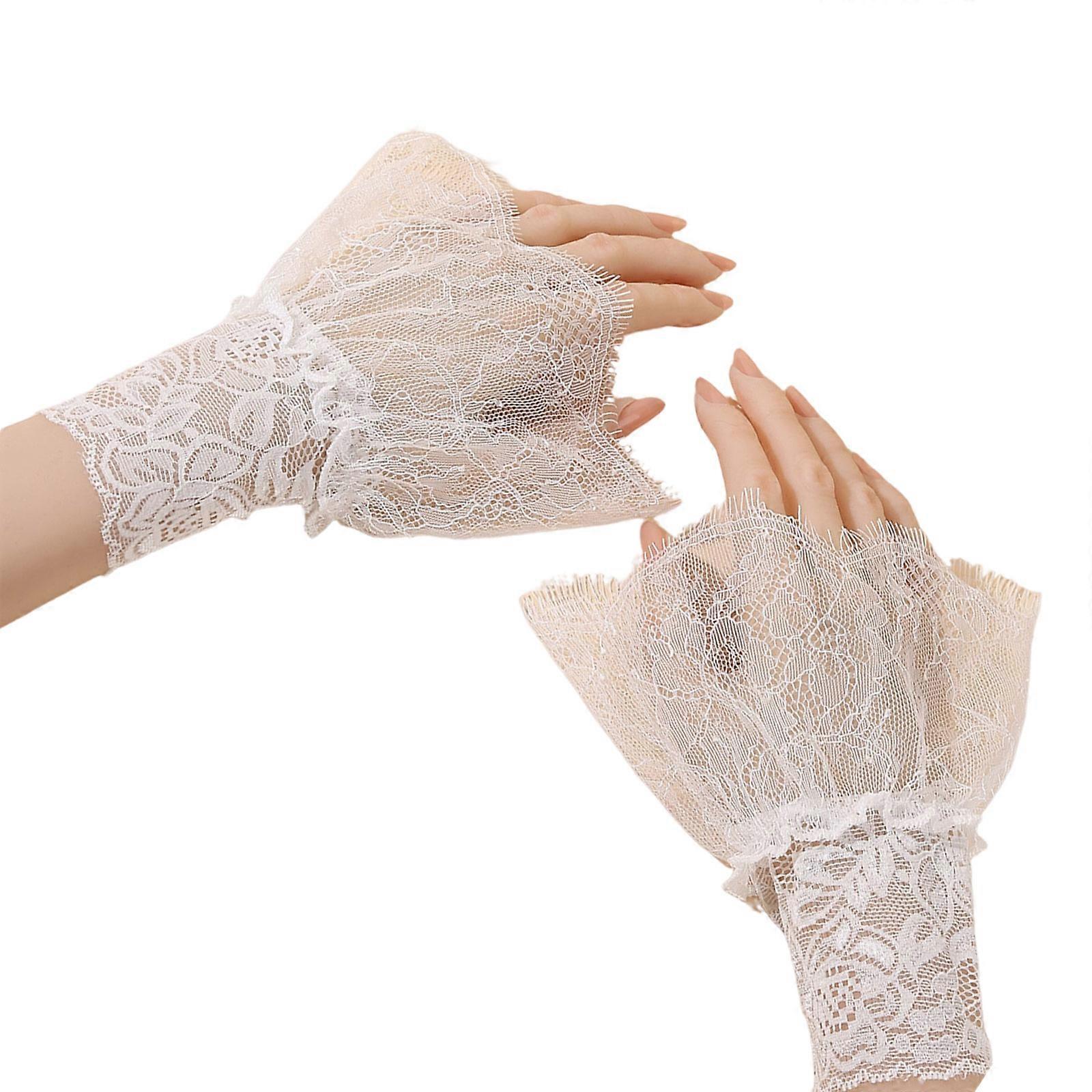 Anime Lace Trim False Sleeves for Women Cosplay Costume Breathable Decorative Sleeves Flared Wrist Cuffs Sleeves White
