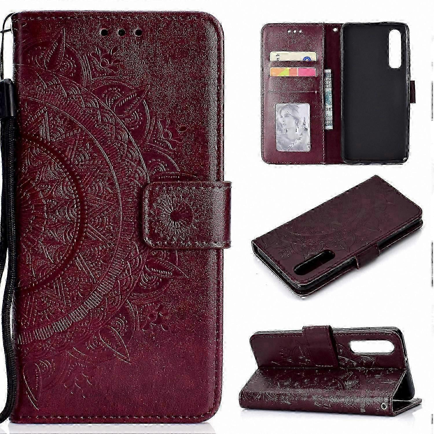 Mandala Flower Wallet PU Leather Case for Smartphone - Grey Protector Cover