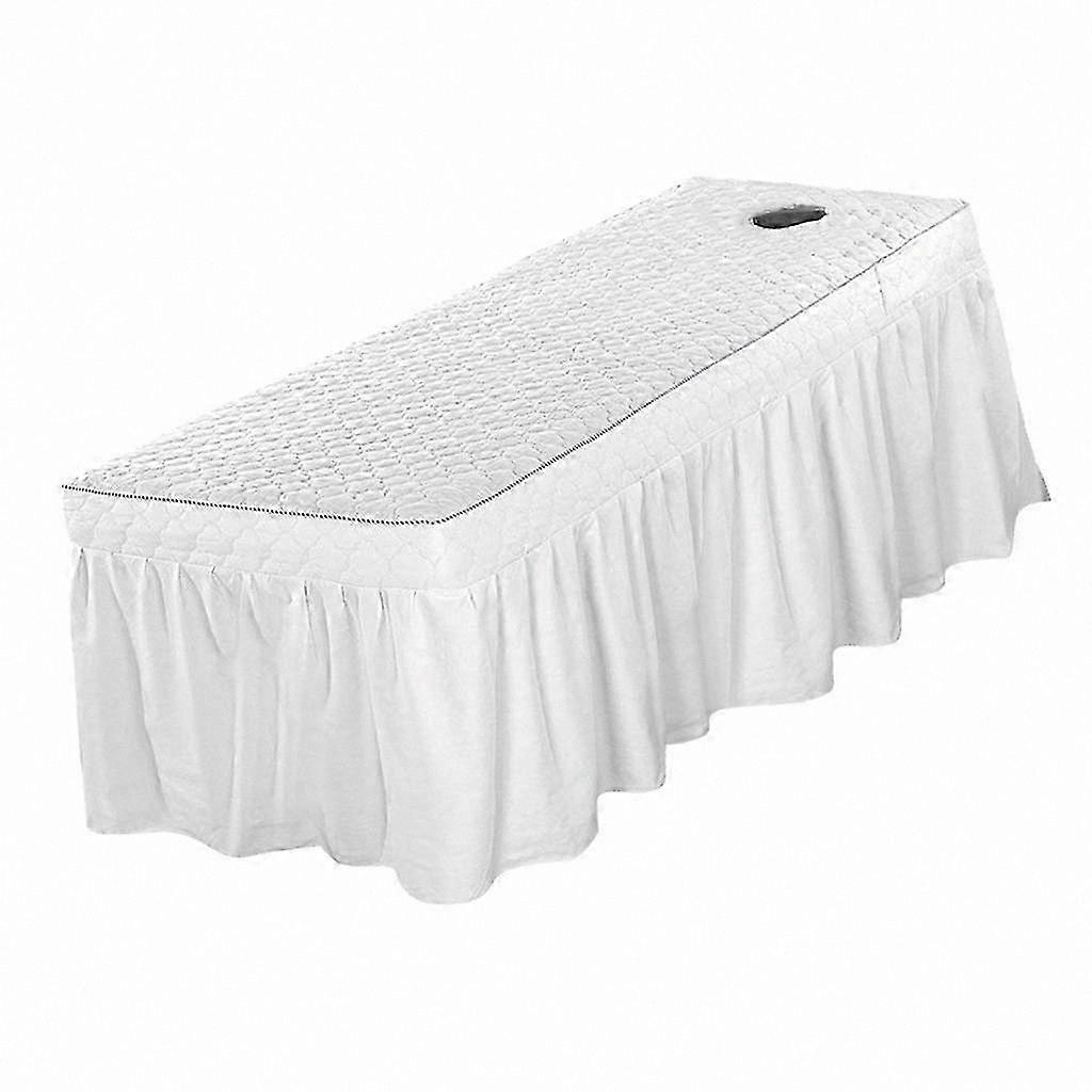 White Spa Bed Valance Sheet with Face Hole and Storage Access, 75x28 Inch Massage Table Skirt Cover