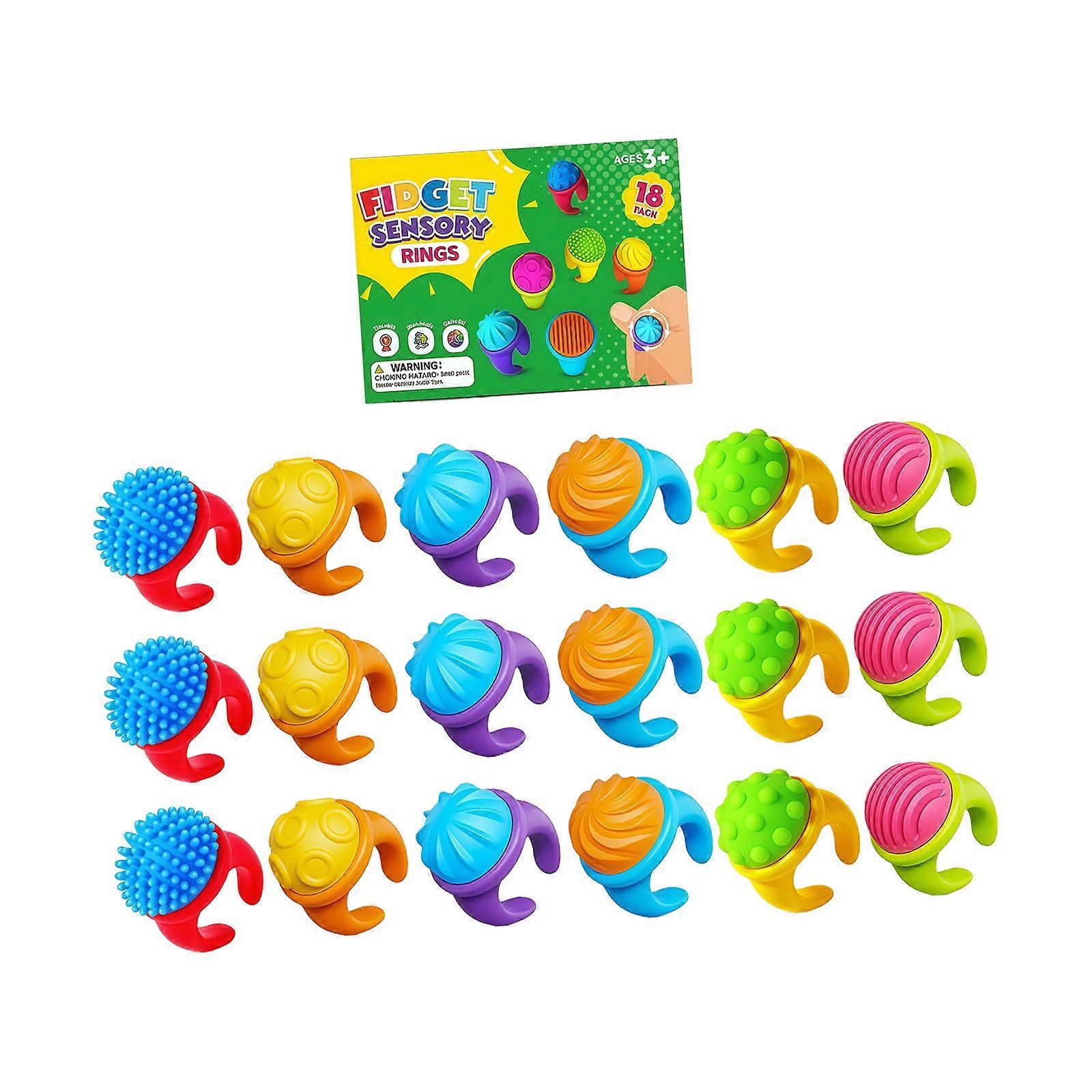 18pcs Silicone Sensory Textured Spinner Ring Toy For Adult Student Stress Reduction Concentration ImproveHand Realx Toy Multicolor
