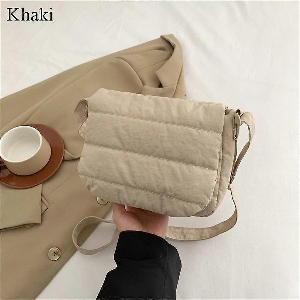 Fashion Solid Color Shoulder Bags Large Capacity Down Cotton Padded Messenger Bags Lightweight Puffy Handbags Women Girls