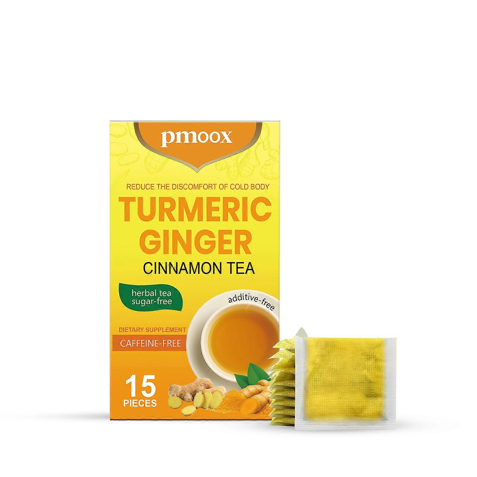 Features: Supports Digestive Health: Aid in promoting health digestion and gut comfort. Boosts Immune System: Contributes to a strong-er and more resilient immune response. Naturally Sweet & Spicy: A harmonious blends of earthy turmeric with sweet-spicy cinnamon notes. Metabolic-Support: Cinnamon is known for its potential-benefits in supporting health metabolism. Pure & Natural: Made with quality, natural ingredients for a wholesome cup. Notice 1.Actual color may be slightly different from the image due to different light effect 2.Please allow 1-3cm deviation due to manual measurement Description: Quantity: 15pcs/bag Package List: 15pcs Tea Bags Premium Turmeric Ginger Cinnamon Tea