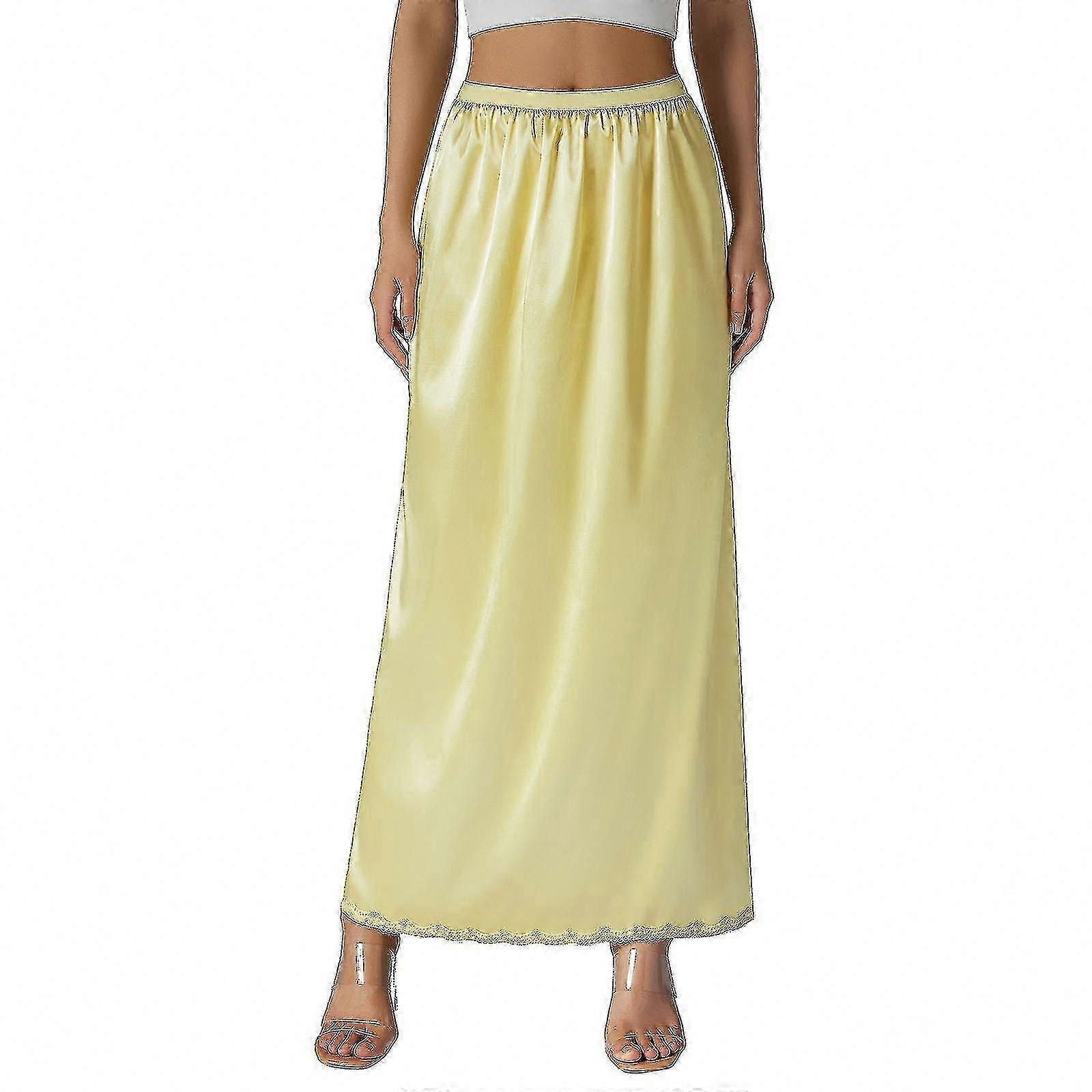 Women's Satin Half Slip with Lace Trim and Elastic Waist Long Underskirt