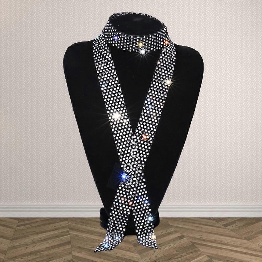 90/130/150cm Rhinestone Tie Shiny Long Necktie Black/White Hollow Out Dazzling Embellished Tie