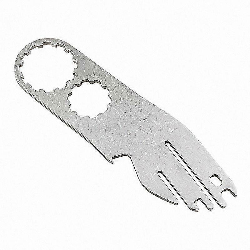 Functions: Disassembly and assembly of French extension lever, disassembly and assembly of French nozzle valve core, disc brake disc correction wrench, 14G spoke wrench, lock pedal tool, front fork shoulder cap wrench, bottle opener Oval shape, compact design, smooth mirror finish, rounded and full appearance One-piece stamping with right-angle folding; durable, resistant to deformation, precise fit Flat profile ensures high fit accuracy; disc is tightly clamped for efficient adjustment Color: Silver Material: Stainless steel Size: Approximately 127 x 37 x 7 mm Package Contents: 1 x Bicycle Brake Disc Adjuster Note: The package includes only the item listed above. Other products are not included. Light reflection and display differences may cause slight color variation between the image and the actual product. Measurement tolerance: ±1–3 mm.