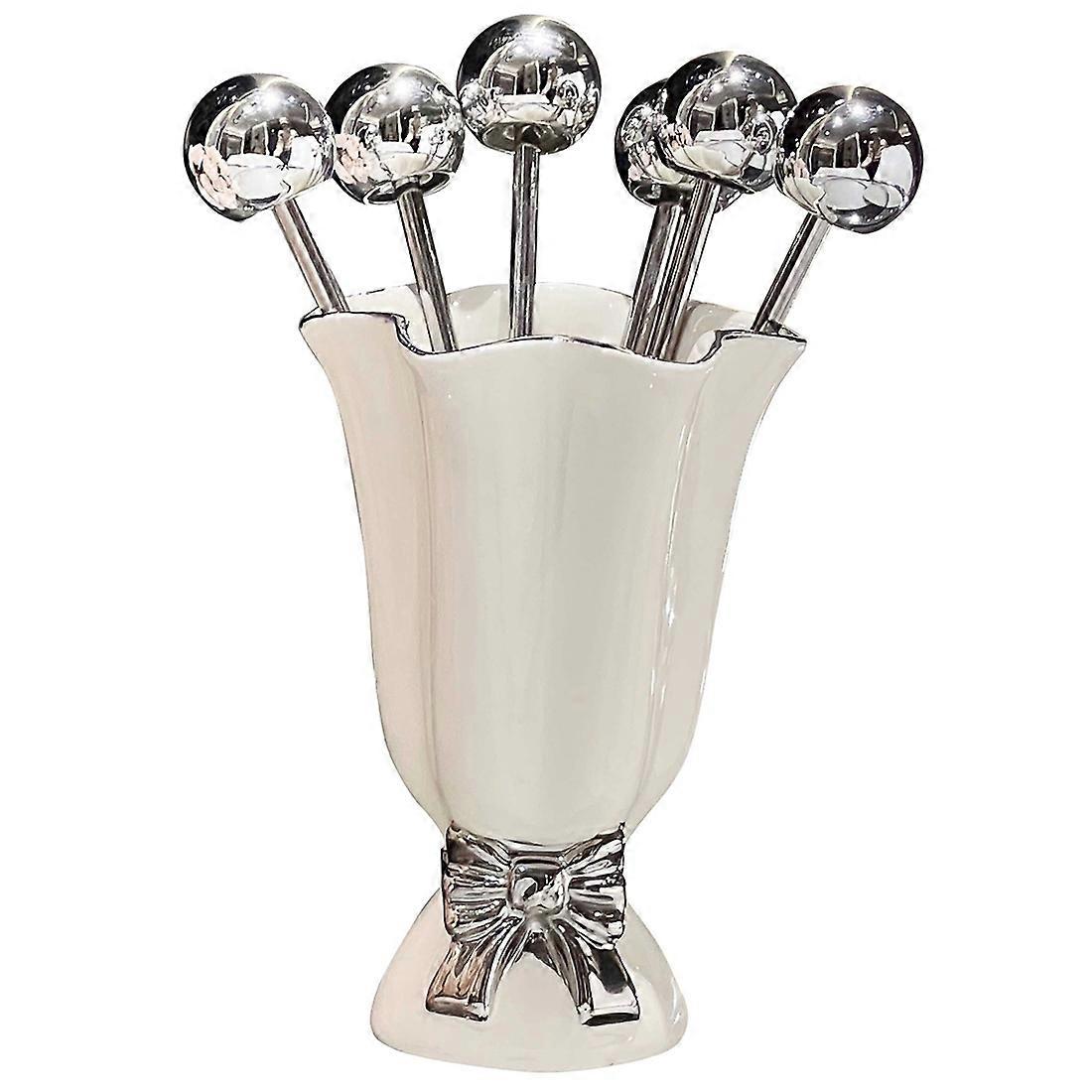 Stainless Steel Fruit Forks Set INS Ceramic Jar Dessert Forks with Holder Light Luxury Home Decoration A