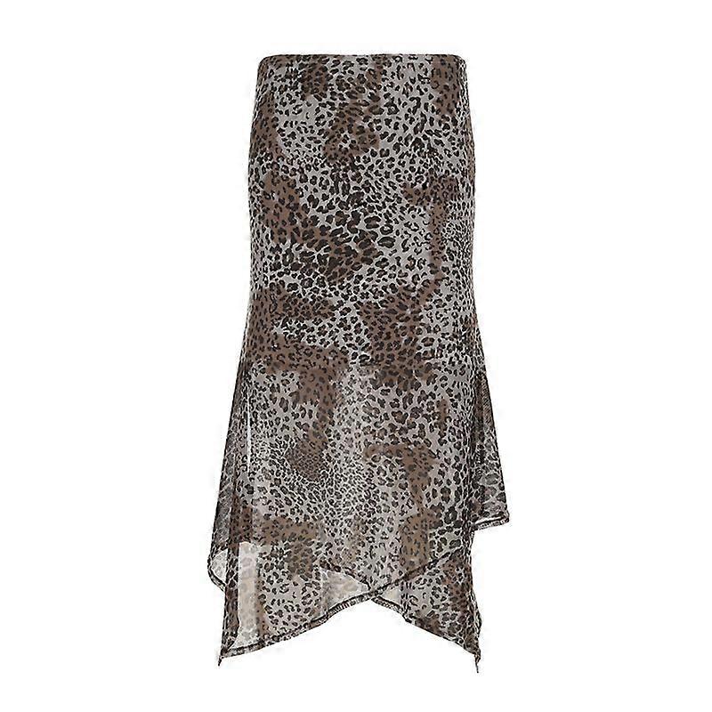 Hegel American Street Vacation Style High-Waisted Leopard Print Asymmetric Mesh Skirt