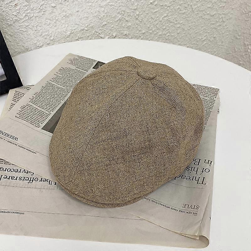 NEWSBOY Cap Linen Hats For Men Women Beret Hat Spring Summer Dark Gray Eight Panel Hat British Style Retro Octagonal Cap