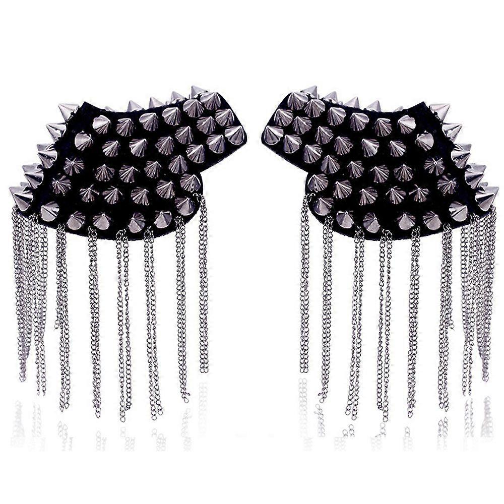 [DETAIL]<br>Set Include: 2Pcs Shoulder Epaulet<br>Condition: Brand New<br>Material: Alloy,Fabric<br>Color: Gold,Silver,Black,Multicolor,Gun Black<br>Size: Approx. 11cm*10cm(As picture shown)<br>Multifunctional, can be used as a cool epaulet.<br>Gothic Rivet Stud Spike Epaulette with tassel chain, elegant and full of charming.<br>Features:<br>Unisex Long Tassel Vintage Epaulet Chain Shoulder Brooch Accessories.<br>Special pattern with tassel chain and rivet detail, elegant and full of charming.<br>Multifunctional, a nice decoration on clothes, stylish and attractive.<br>Characteristic and exquisite design with pleasant color and brightness.<br>It is perfect for performance, ceremony, and costume fancy dress party.<br>Package Includes:<br>1 Pair Shoulder Boards Badge<br><br>[ATTRIBUTES]<br>- High-concerned chemical: None<br>- Gender: Women<br>- Department Name: Adult<br>- High-concerned chemical: None<br>- Gender: Women<br>- Department Name: Adult<br>- Material: POLYESTER<br>- Origin: Mainland China<br>- CN: Zhejiang