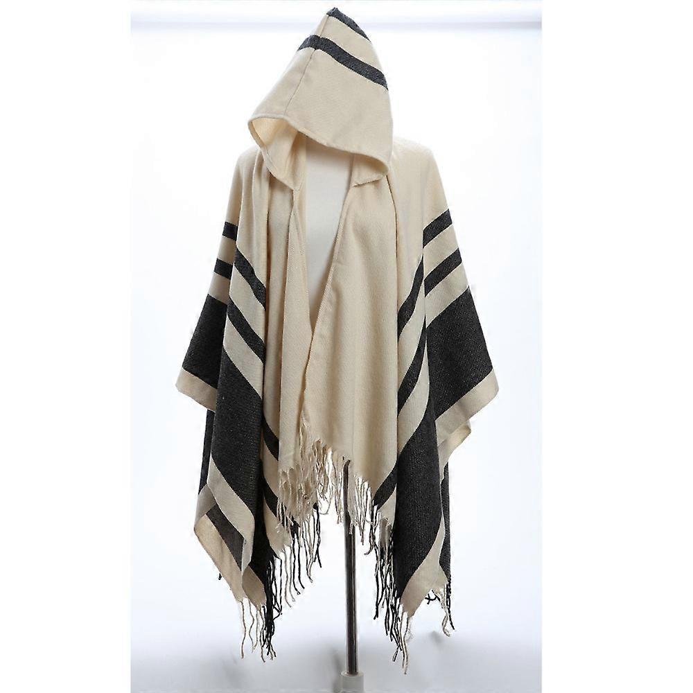 Womens Winter Warm Fleece Shawl Imitation Cashmere Hooded Shawl Cape Thicken Cloak Cardigan