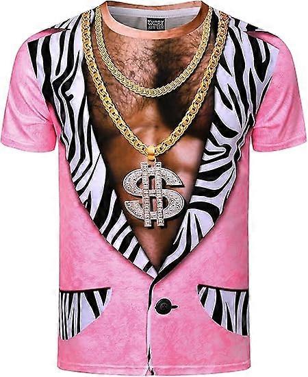 Funny World Pimp Costume for Men 70s Retro Muscle Fit T 3D Novelty Fake Abs Printed T-Shirt