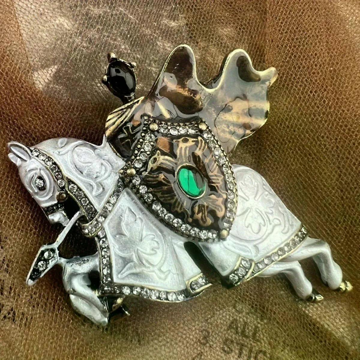 Boastful Knight Style Enamel Horse Brooch with Czech Rhinestones - Best Choice for Retro Lovers _x000D_ _x000D_ _x000D_
