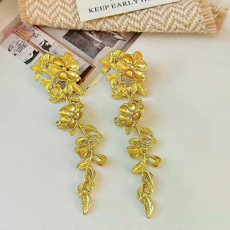 Metal tassel earrings retro high-end earrings exaggerated fashion design geometric matte flowers ladies new