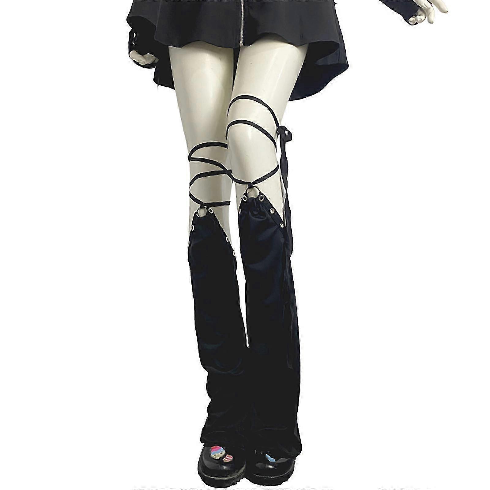 Women Punk Black Flared Foot Covers with Eyelets Lace Up Straps Japanese Harajuku Leg Warmers Long Tube Socks Streetwear Section 3