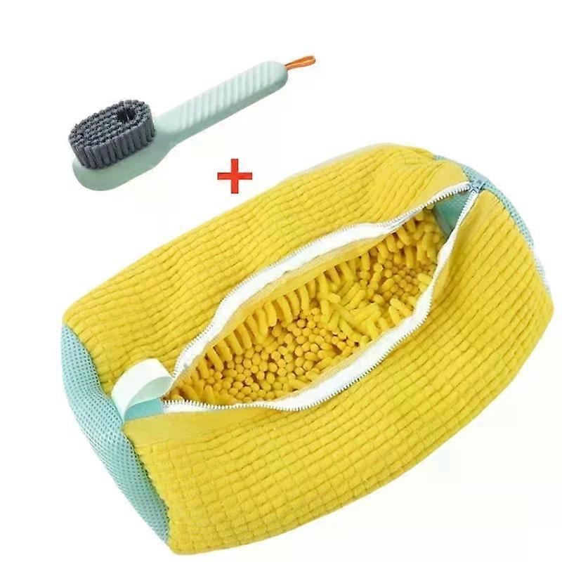 Reusable Durable Fluffy Fiber Shoe Washing Bag 360° Surround Cleaning Machine-Washable Laundry Bag with Zipper Closure