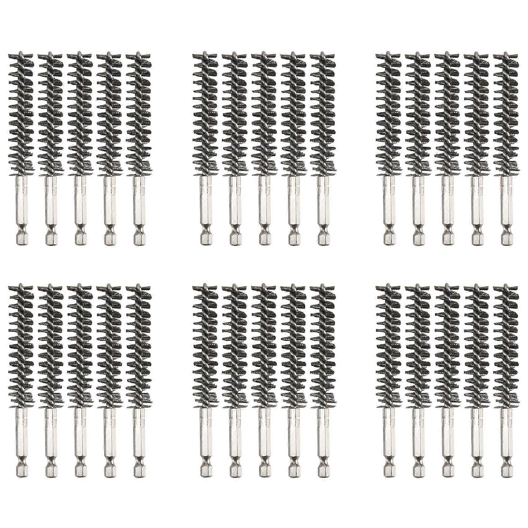 6X Stainless Steel Bore Brush Wire Brush for Power Drill Cleaning Wire Brush Stainless Steel Brush with Hex Shank Handle