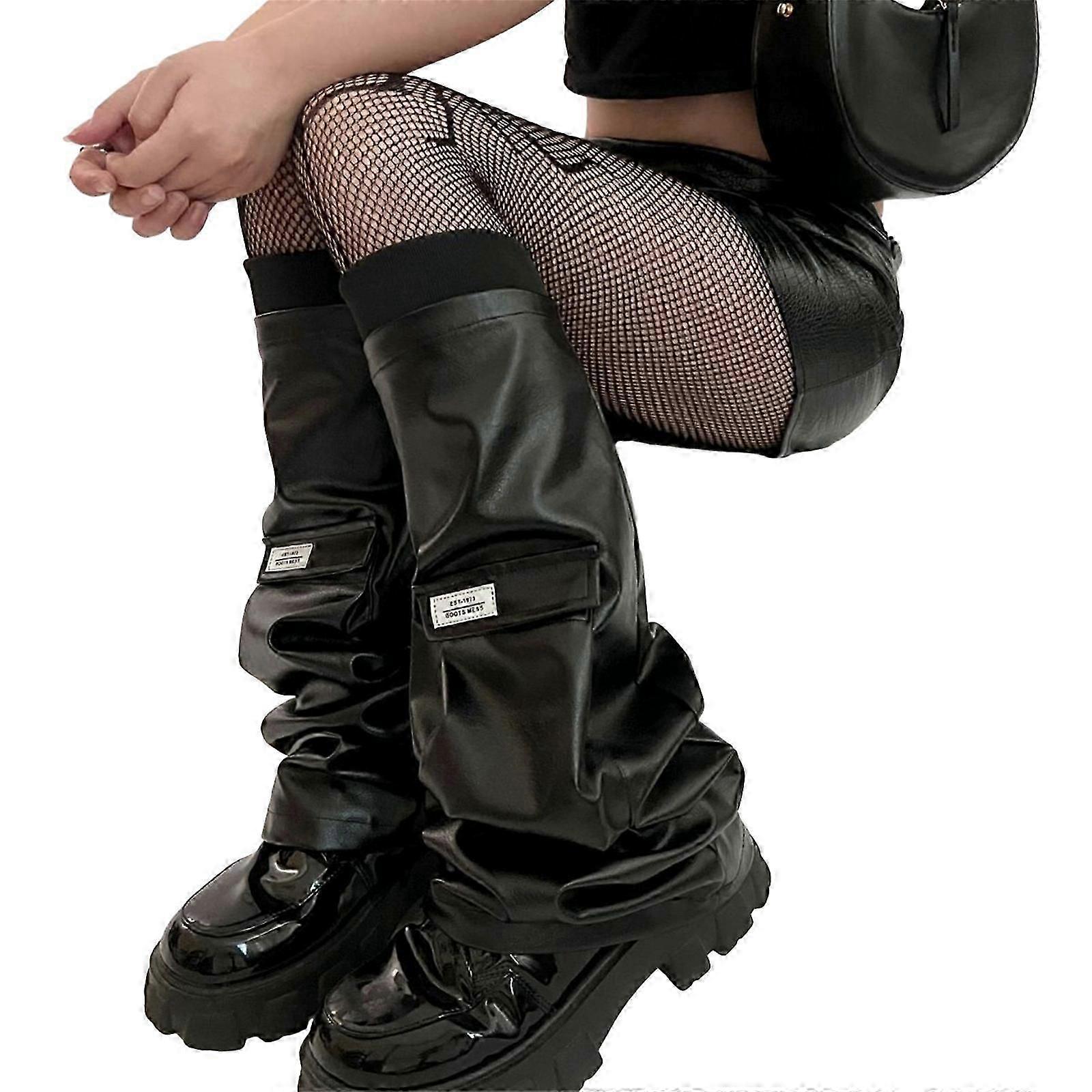 Girls PU Leathers Leg Warmers Flared Leg Sleeves Gothic Baggy Cuffs Ankle Heaped Socks Campus Long Socks