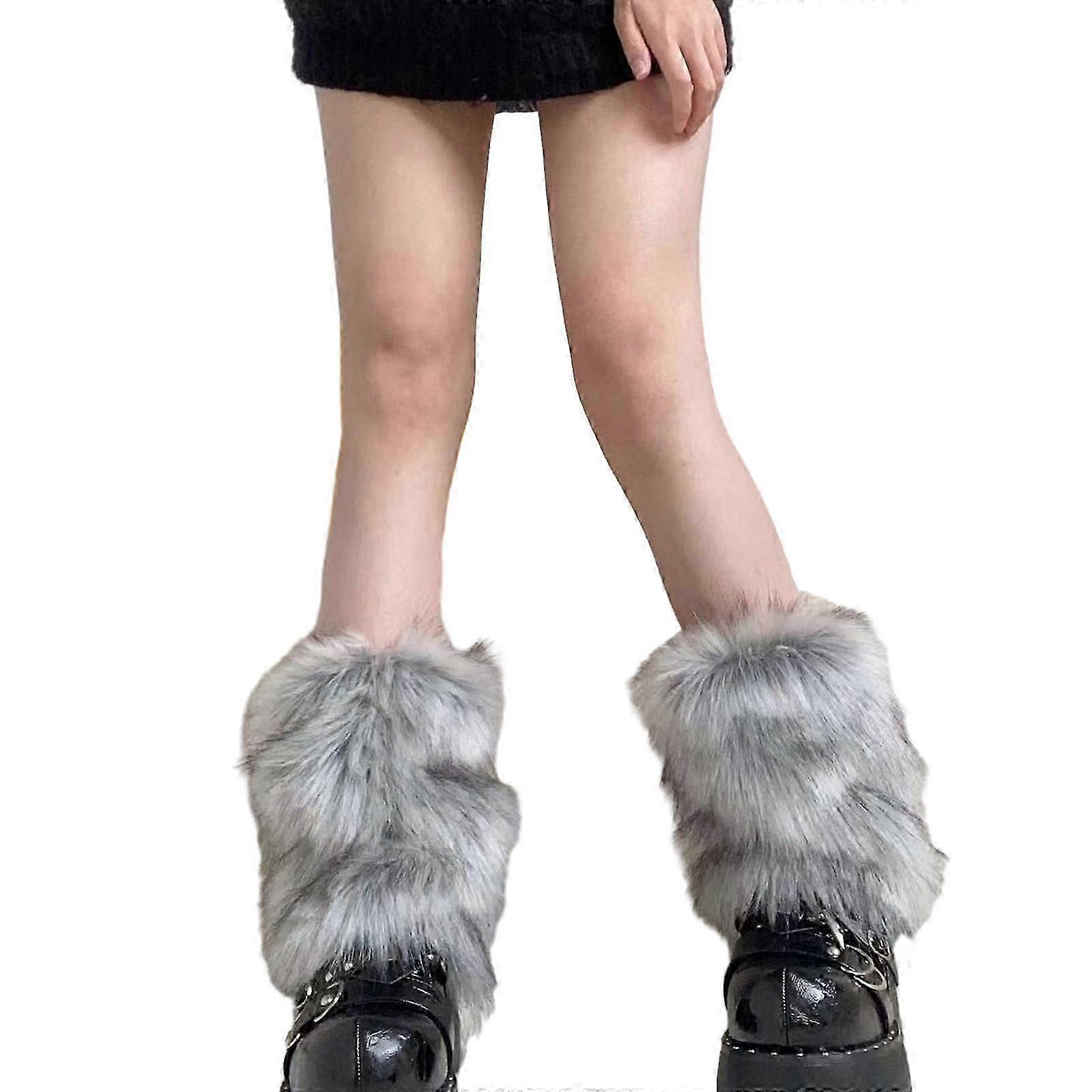 Fuzzy Faux Furs Leg Warmers Furs Heels Long Boots Cuffs Cover Has Elastic One Pair Carnivals Boot Cover Y2K JK Uniform E40CM
