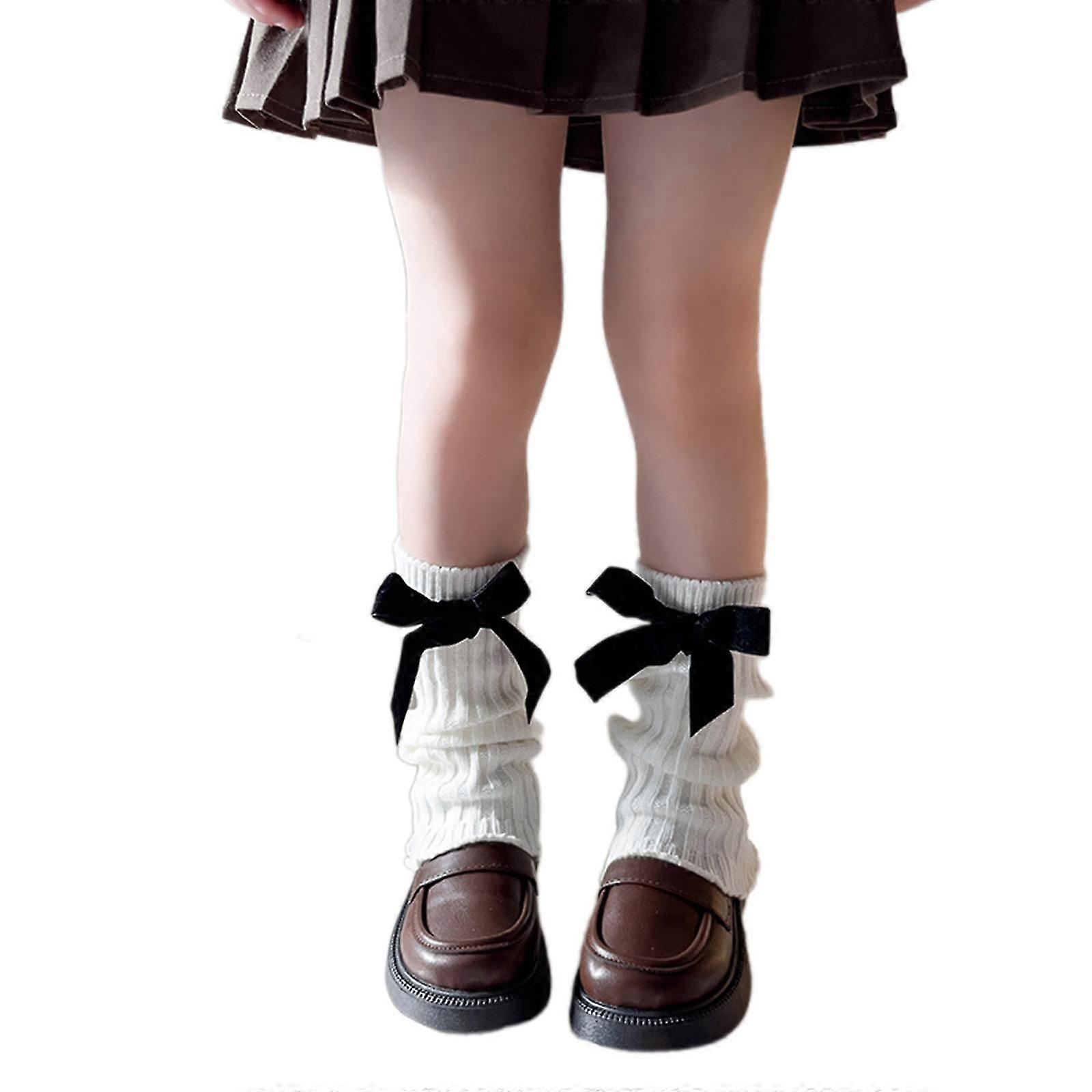 Handmade Crochet Leg Warmers with Bowknot for Little Girl Slouchy Socks Breathable Tights Warm Leggings Kids Leg Warmers White