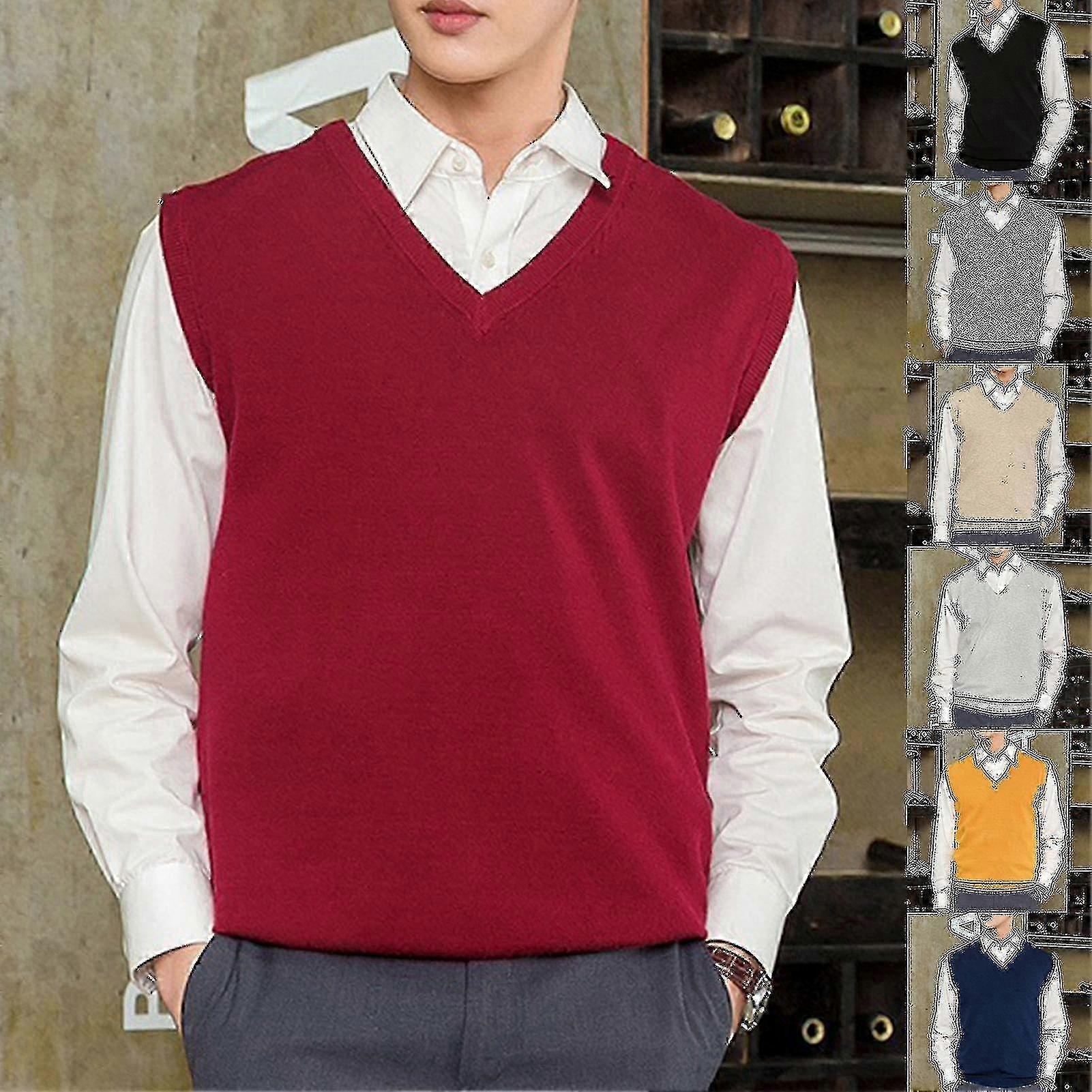 Men's Sleeveless V-Neck Loose Fit Sweater Vest for Casual Wear