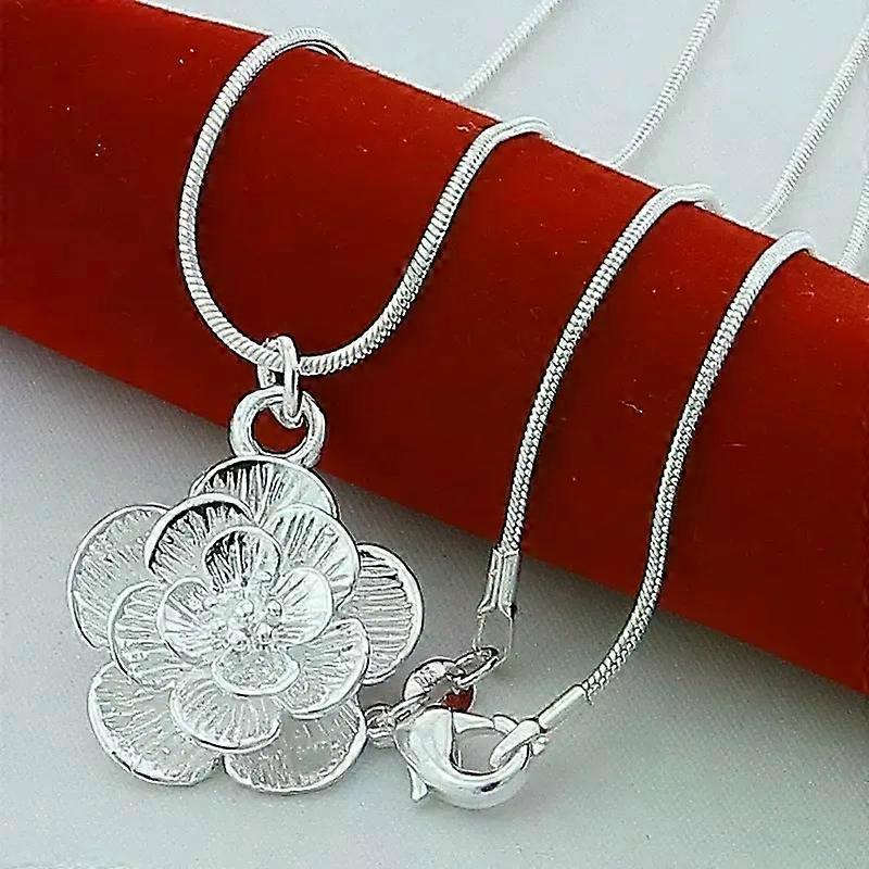 Silver color Rose Flower Pendant Necklace 18/20-24/26/30 Inch Snake Chain For Women Wedding Engagement Jewelry