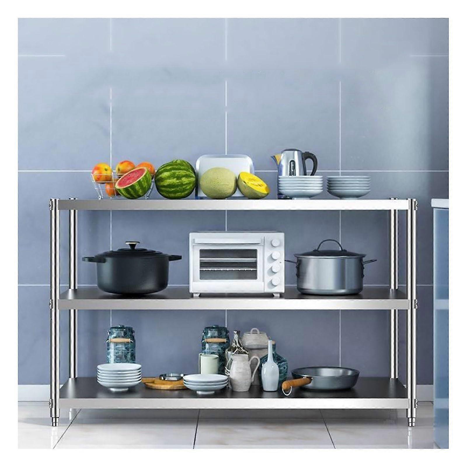 Stainless Steel Work Table with Adjustable Shelf, 3 Tier Heavy Duty Kitchen Prep Bench 60x40x80cm