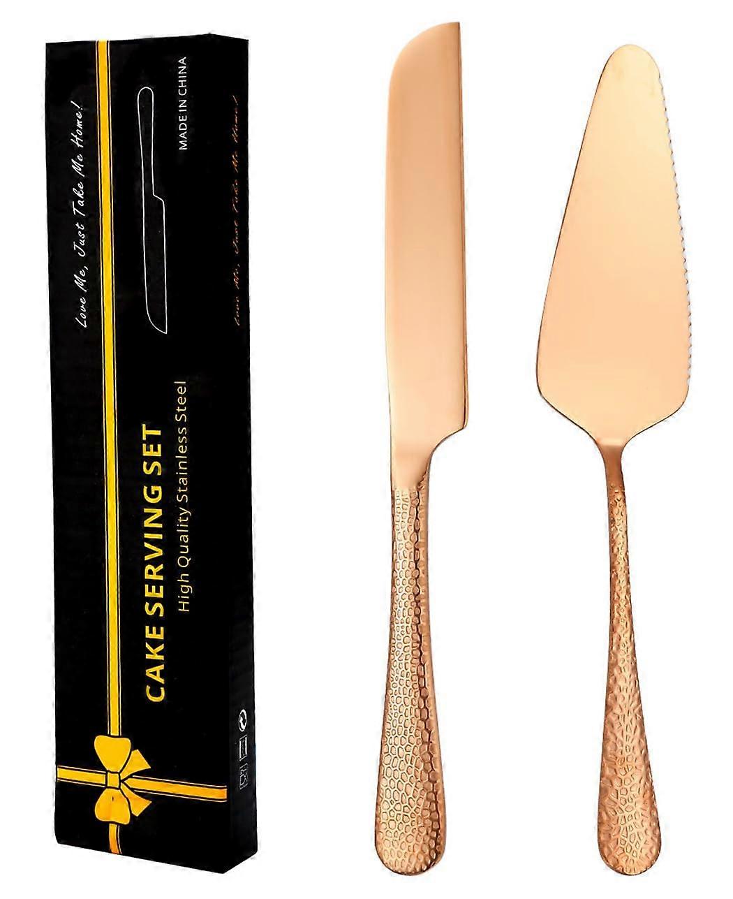 Rose Gold Wedding Cake Knife and Server Set with Hammered Handle, Stainless Steel for Parties