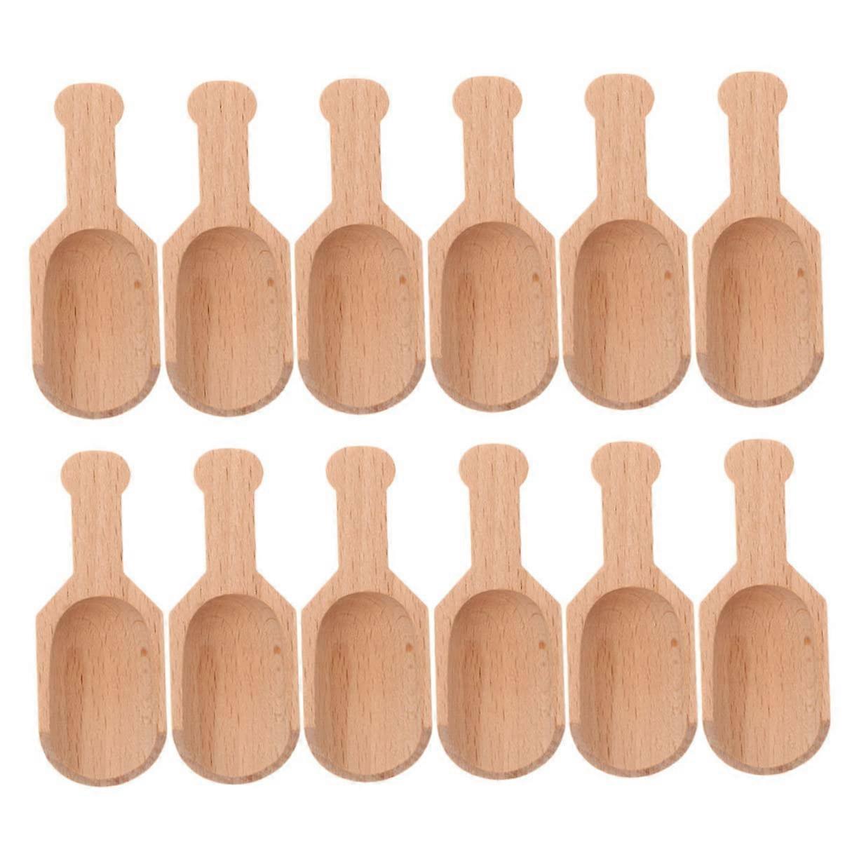 12pcs Wooden Tea Spoons and Kitchen Scoops for Sugar Spices Condiments Smooth Edge Design