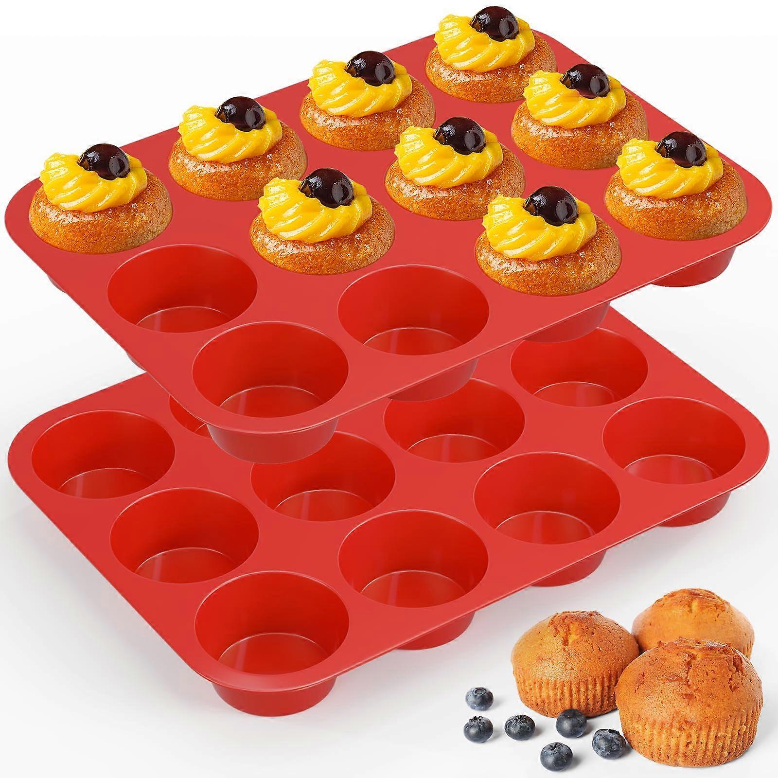 Silicone Muffin Pan 12 Cup Nonstick Cupcake Pan Set for Baking, Oven Microwave Freezer Safe