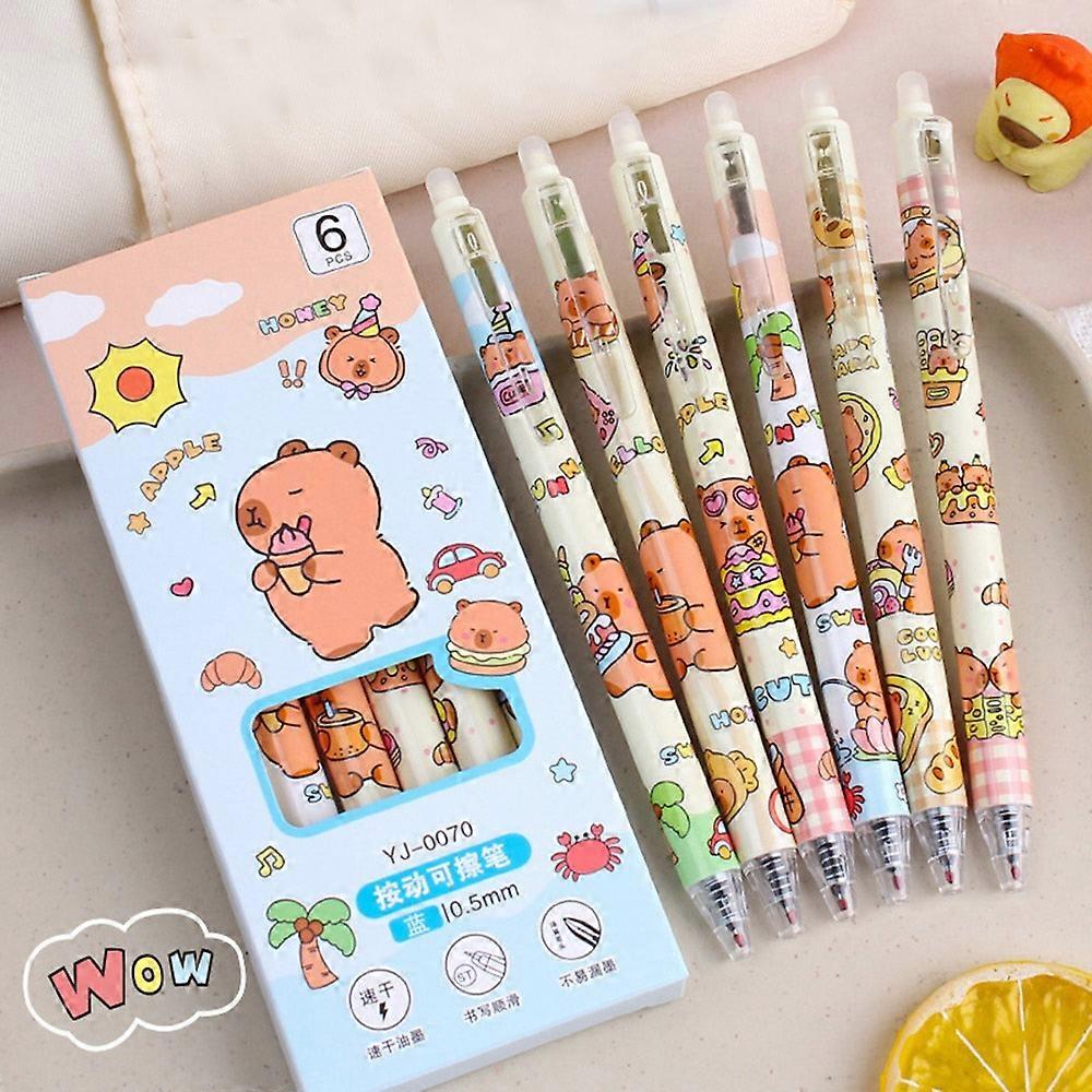 6Pcs/lot New 0.5mm Capybara Gel Pen Quick-drying Cartoon Press Erasable Pen Black Pen School Office Writing Stationery